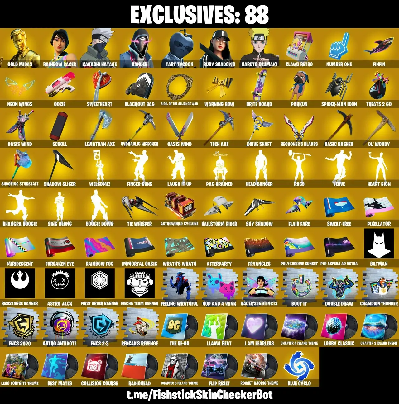 🌈 178 Skins [PC] 💎 Gold Midas 🚗 Rainbow Racer 🌀 Xander 🍎 Tart Tycoon ⚛️ Fusion 🦊 Ronin 🦾 Kado Thorne 🔬 The Scientist 🚀 FO993