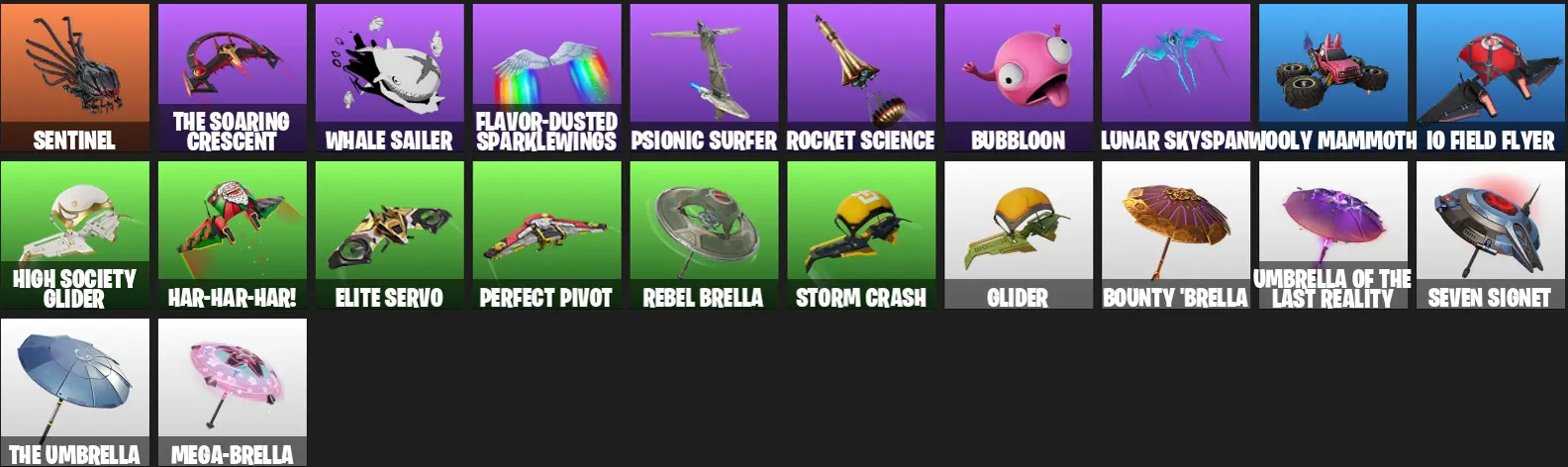 18 skins | Ronin | The Cube Queen | The Foundation | Polar Peely | Charlotte | Shanta | Toona Fish | J.B. Chimpanski