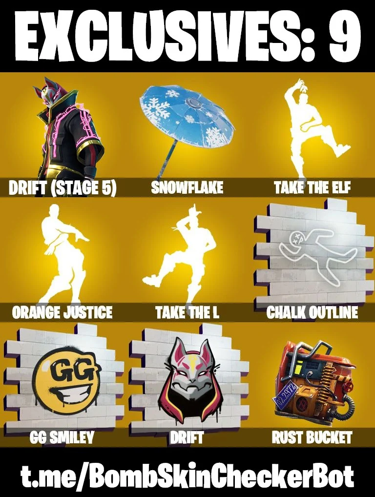 🔮24 Skins🔮 Take The L💎Take The Elf💎Rust Bucket💎Orange Justice💎Snowflake💎DJ Yonder