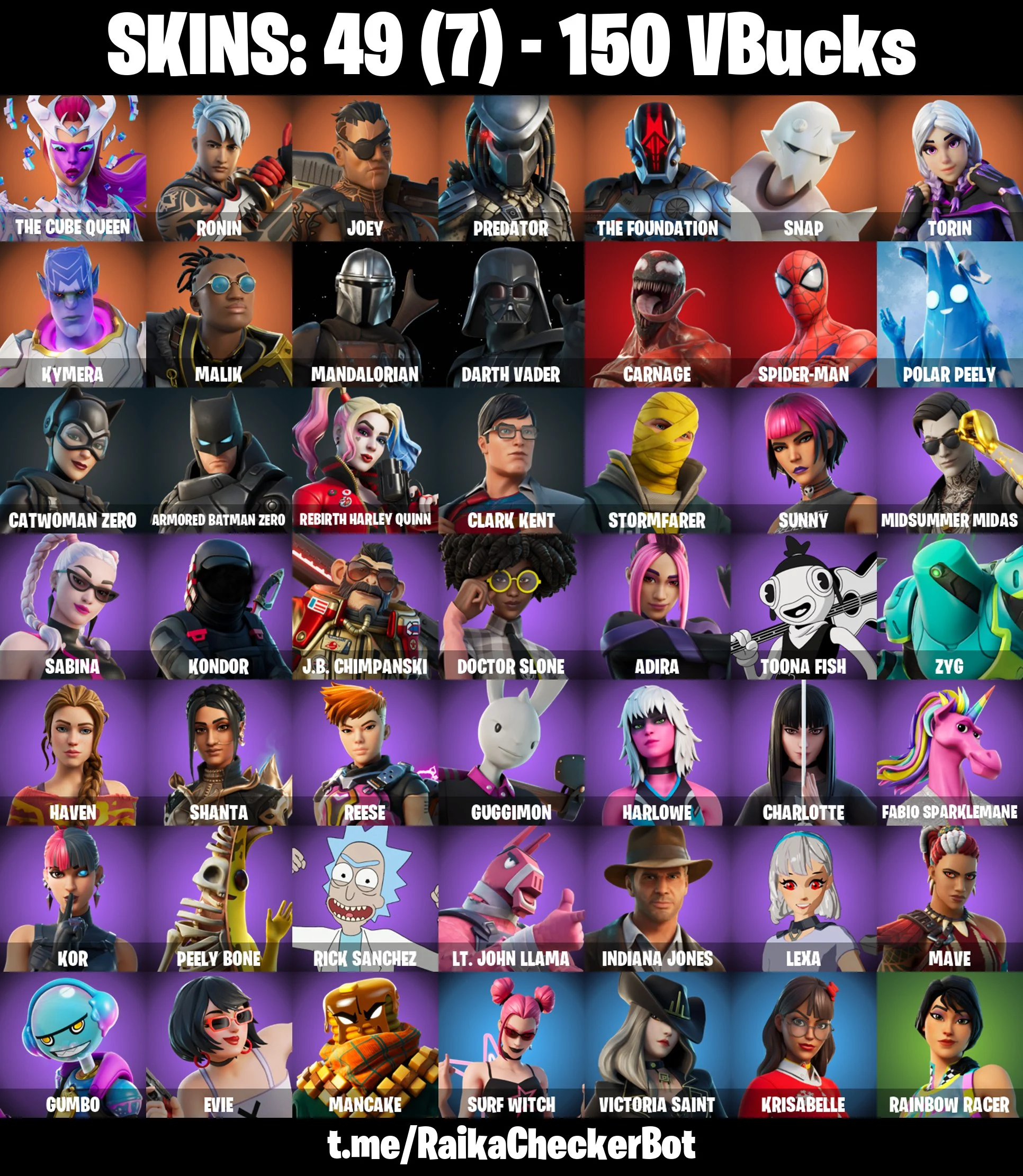 👑 49 Skins 👑PC/PSN/XBOX👑 The Cube Queen 👑 Ronin 👑 Joey 👑 Predator 👑 The Foundation 👑 Snap 👑 Torin 👑 Kymera 👑 Malik 👑 Mandalorian 👑 Darth Vader 👑 Carnage 👑
