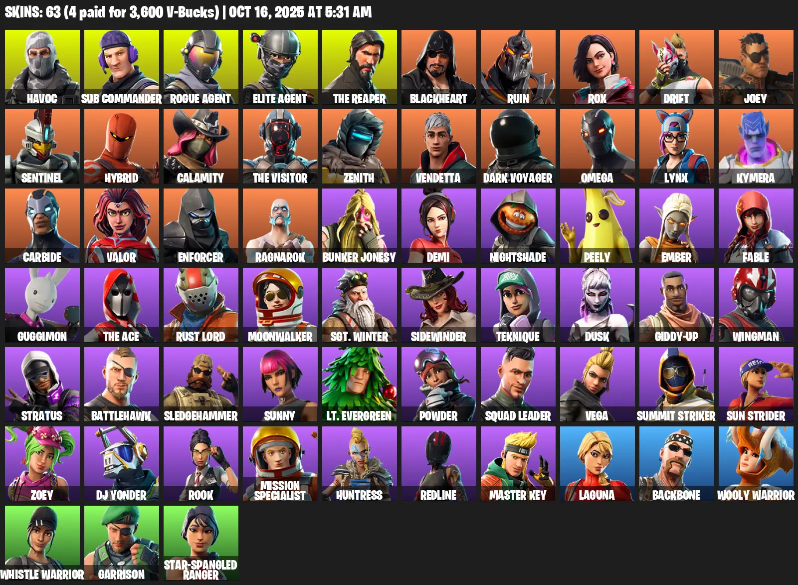 [PC/PSN] | 63 skins | 750 V-bucks | Take The L | The Reaper | Elite Agent | Omega | Havoc | Sub Commander | Rogue Agent | #VSE0753 | #MBFN