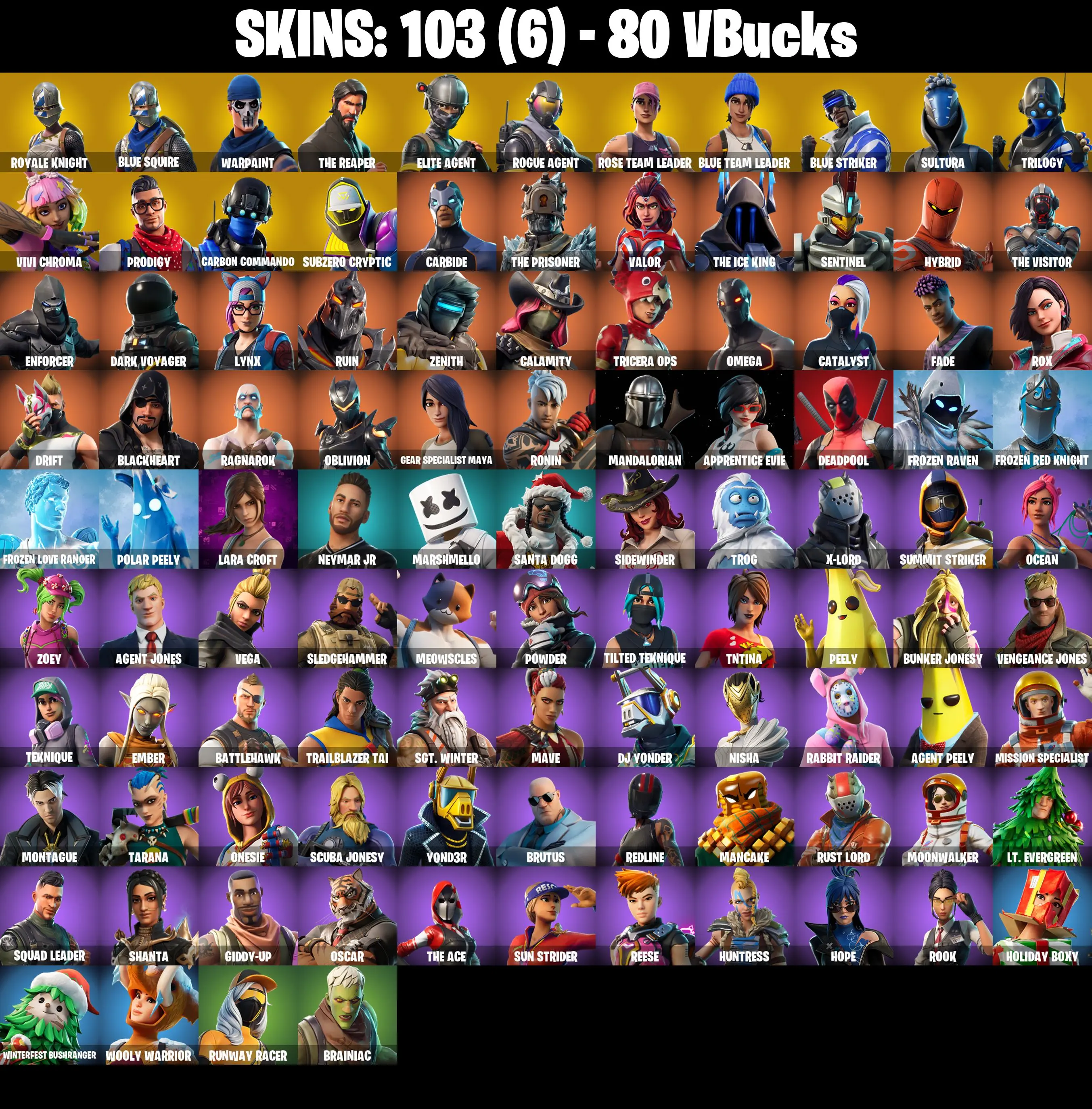 PC/PSN/XBOX ♨️103 skins ✨ OG STW ✨ Floss ✨ Royale Knight ✨ Blue Squire ✨ Lara Croft ✨ Deadpool ✨ The Reaper ✨ Elite Agent ✨ Omega ✨ Take The L ✨ #B775