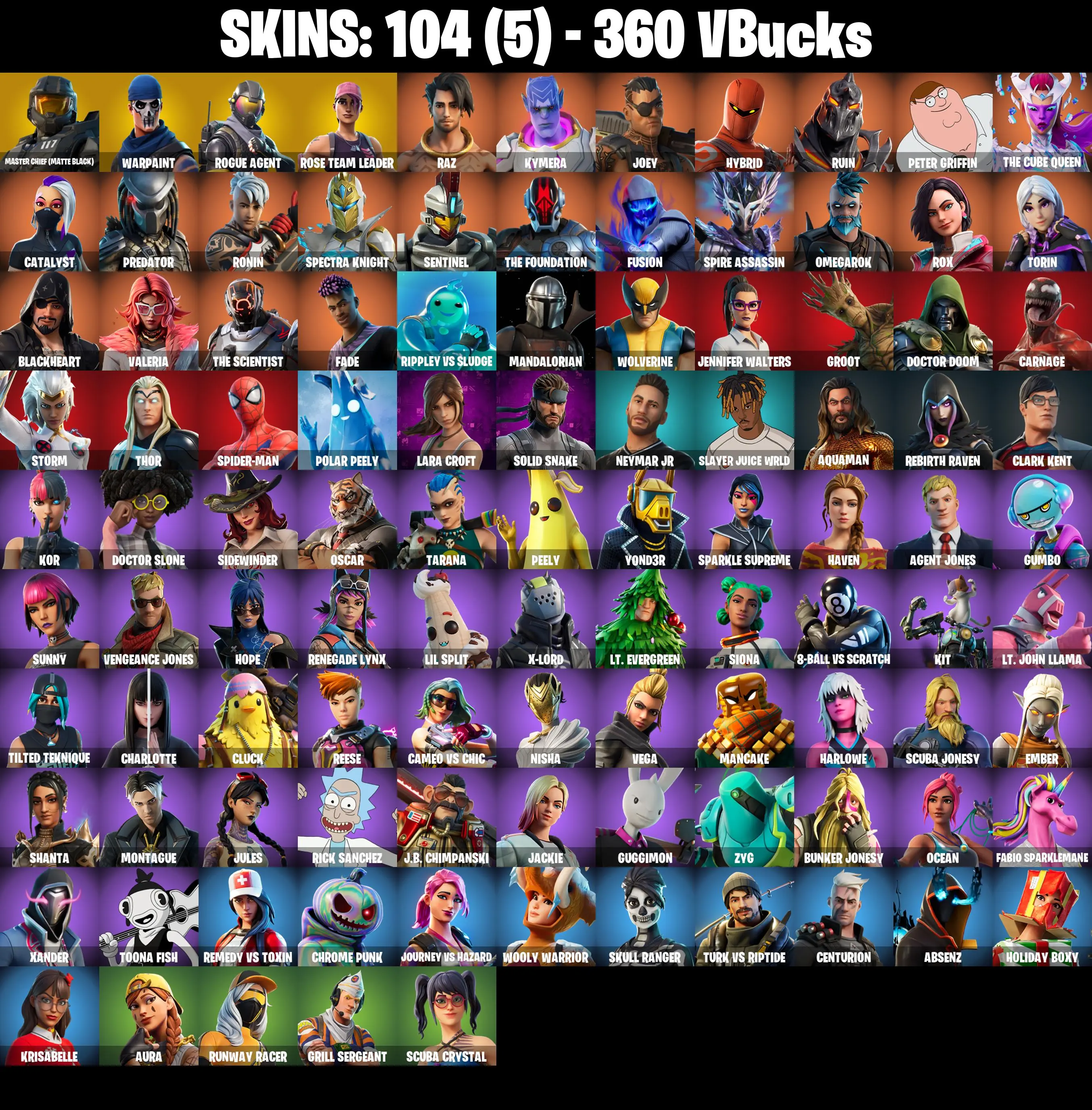 PC/PSN/XBOX ♨️104 skins ✨ OG STW ✨ Lara Croft ✨ Master Chief (Matte Black) ✨ Rogue Agent ✨ Peely ✨ Fusion ✨ Spider-Man ✨ Spire Assassin ✨ #B870