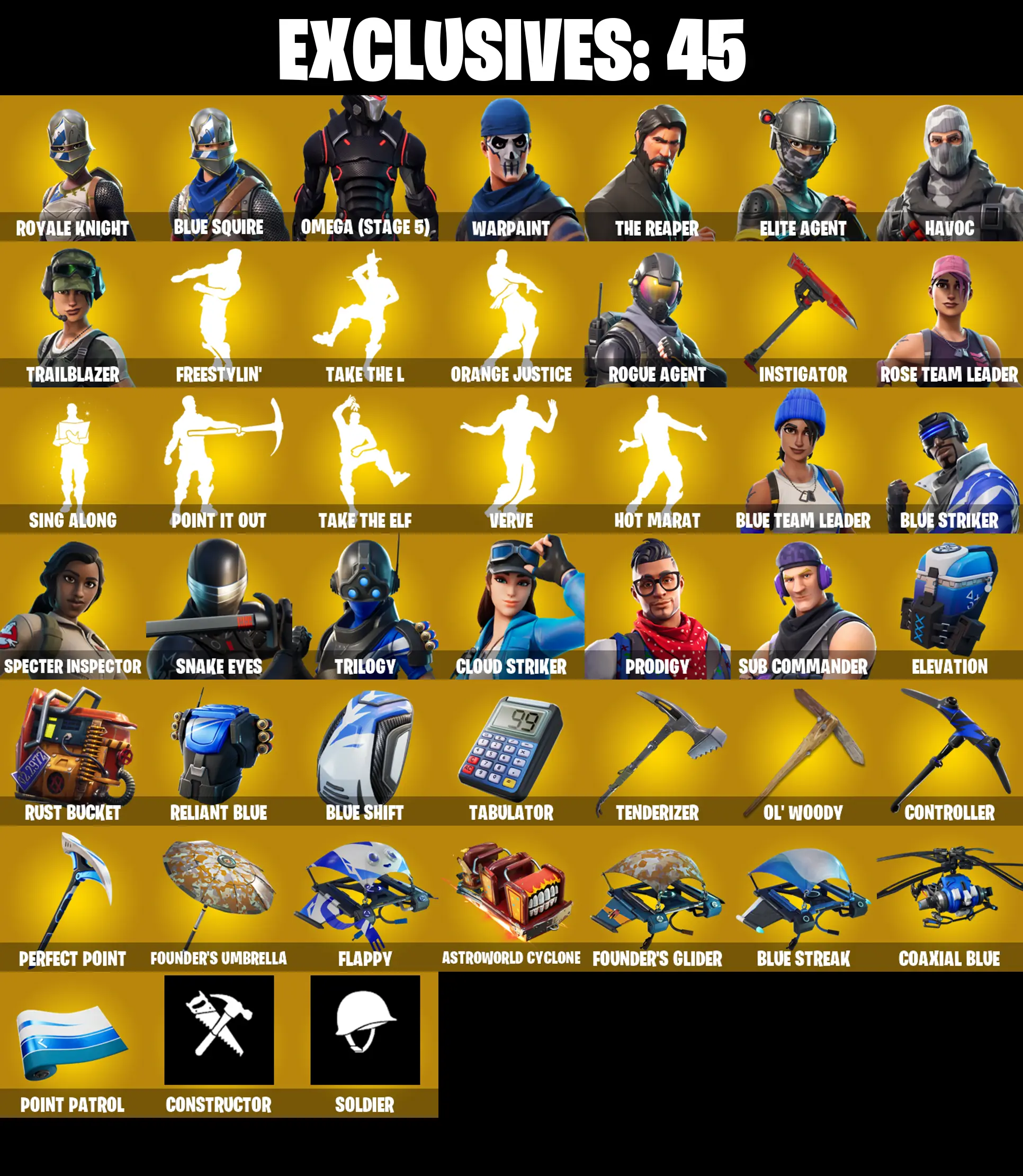 PC/PSN/XBOX ♨️105 skins ✨ OG STW ✨ Royale Knight ✨ Blue Squire ✨ Omega (stage 5) ✨ The Reaper ✨ Elite Agent ✨ Havoc ✨ Backup Plan ✨ Trailblazer ✨ #B773