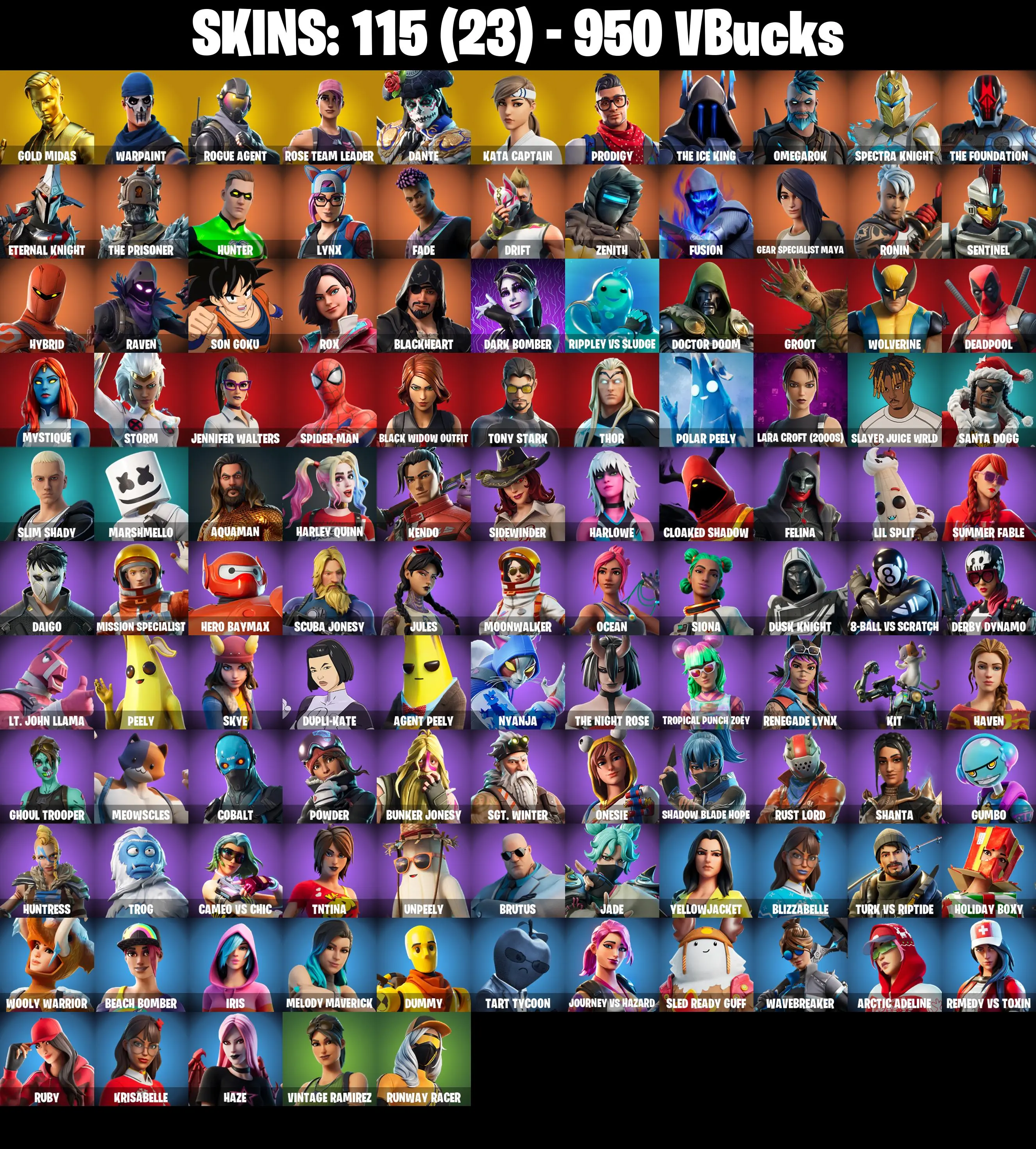 PC/PSN/XBOX ♨️115 skins ✨ OG STW ✨ Deadpool ✨ Gold Midas ✨ Reaper ✨ Take The L ✨ Rogue Agent ✨ Drift ✨ Jabba Switchway ✨ The Ice King ✨ Peely ✨ #B772