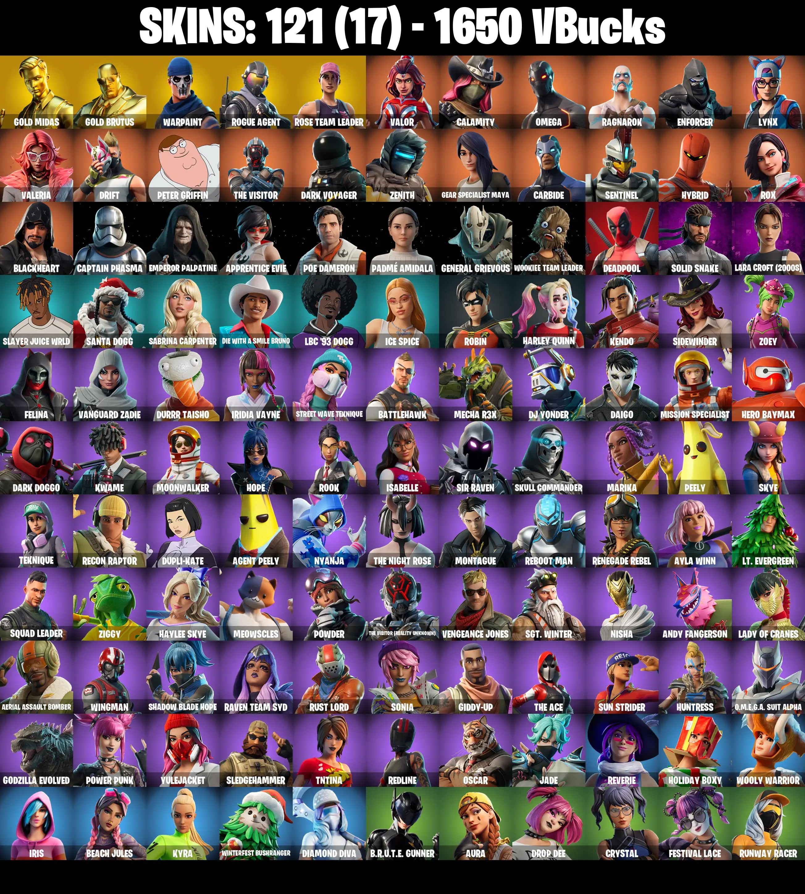 PC/PSN/XBOX ♨️121 skins ✨ OG STW ✨ Deadpool ✨ Gold Midas ✨ Gold Brutus ✨ Omega ✨ Take The L ✨ Orange Justice ✨ Dark Voyager ✨ Rogue Agent ✨ Drift ✨ #B765