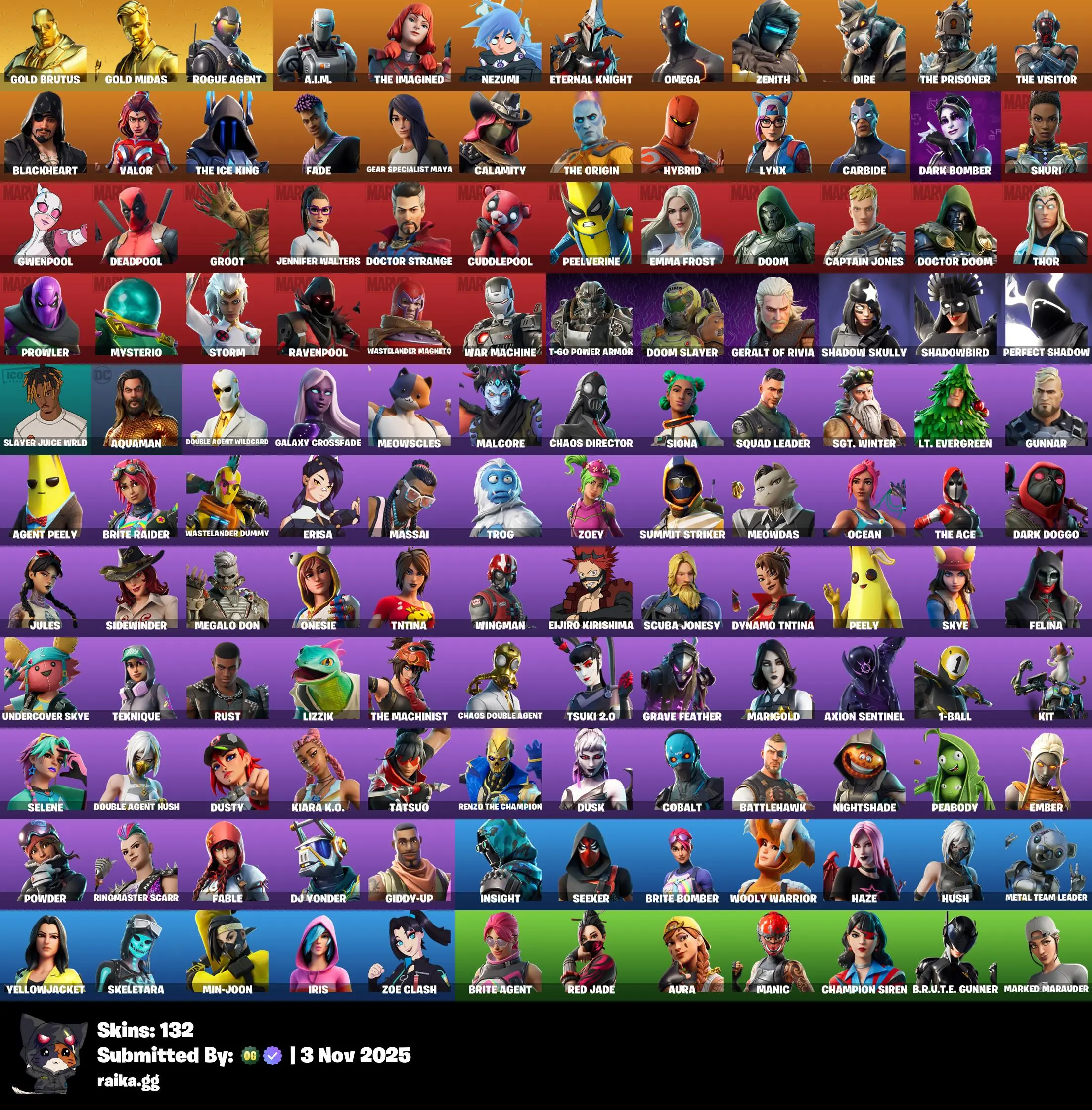 [PC/PSN/XBOX] 132 skins | Gold Brutus | Gold Midas | Rogue Agent | A.I.M. | The Imagined | Nezumi | Eternal Knight | Omega | Zenith | Dire | The Prisoner | 250 VB