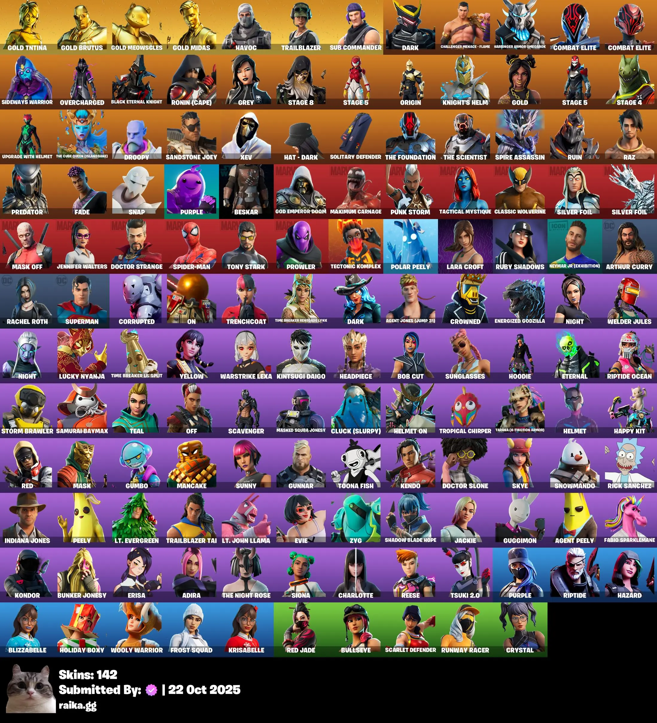 [PC/PSN/XBOX] 142 skins | Gold TNTina | Gold Brutus | Gold Meowscles | Gold Midas | Havoc | Trailblazer | Sub Commander | DARK | Challenger Menace ⸱ F