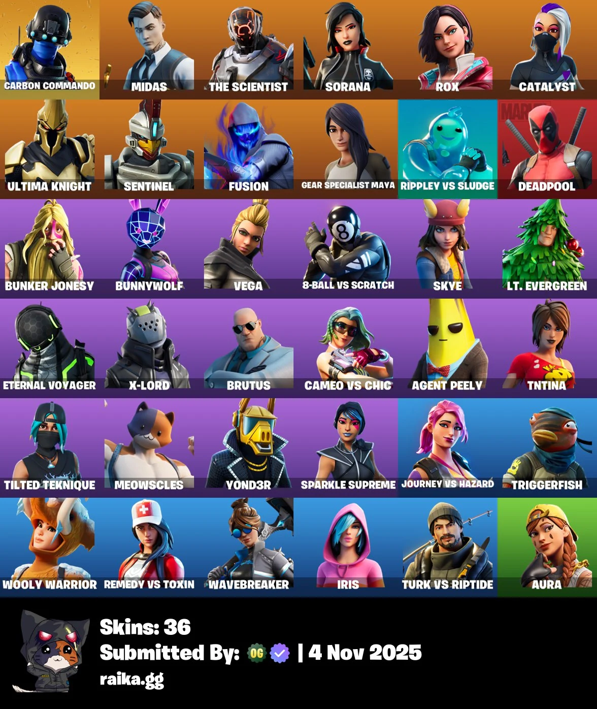 [PC/PSN/XBOX] 36 skins | Carbon Commando | Midas | The Scientist | Sorana | Rox | Catalyst | Ultima Knight | Sentinel | Fusion | Gear Specialist Maya | 0 VB