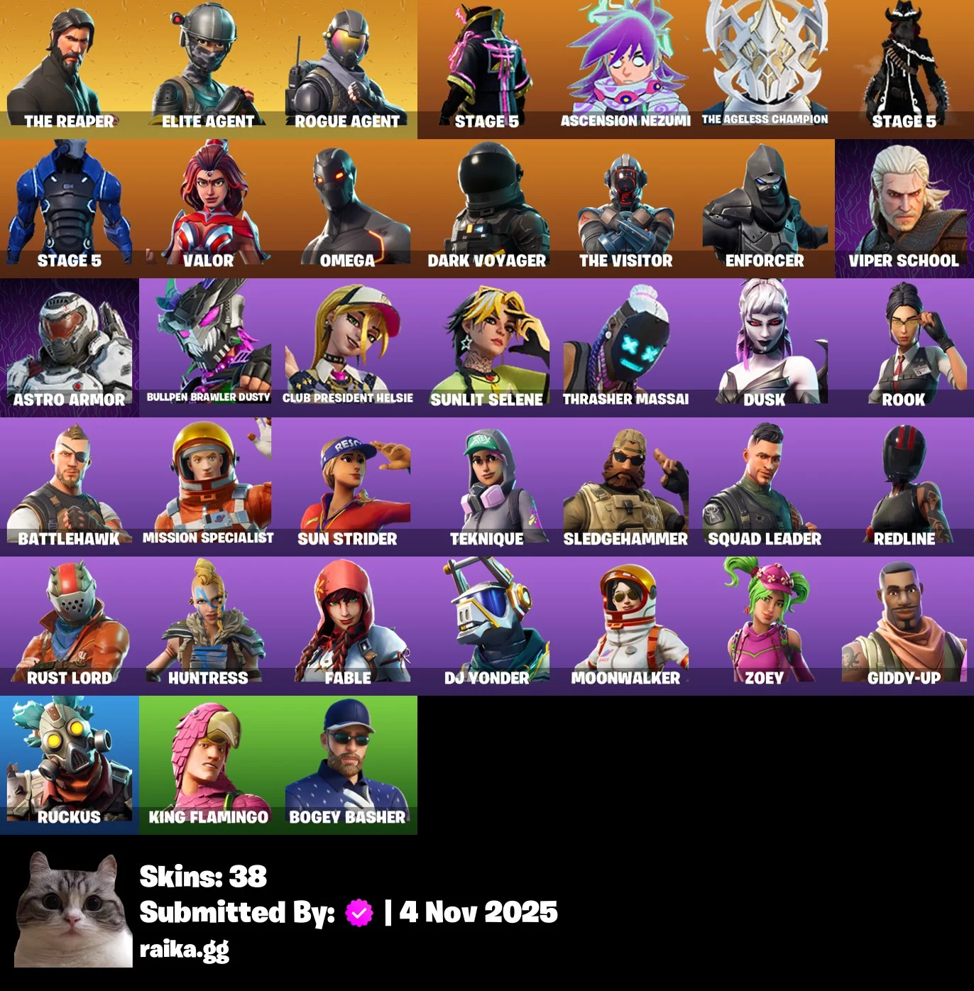 [PC/PSN/XBOX] 38 skins | The Reaper | Elite Agent | Rogue Agent | STAGE 5 | Ascension Nezumi | The Ageless Champion | STAGE 5 | STAGE 5 | Valor | Omeg