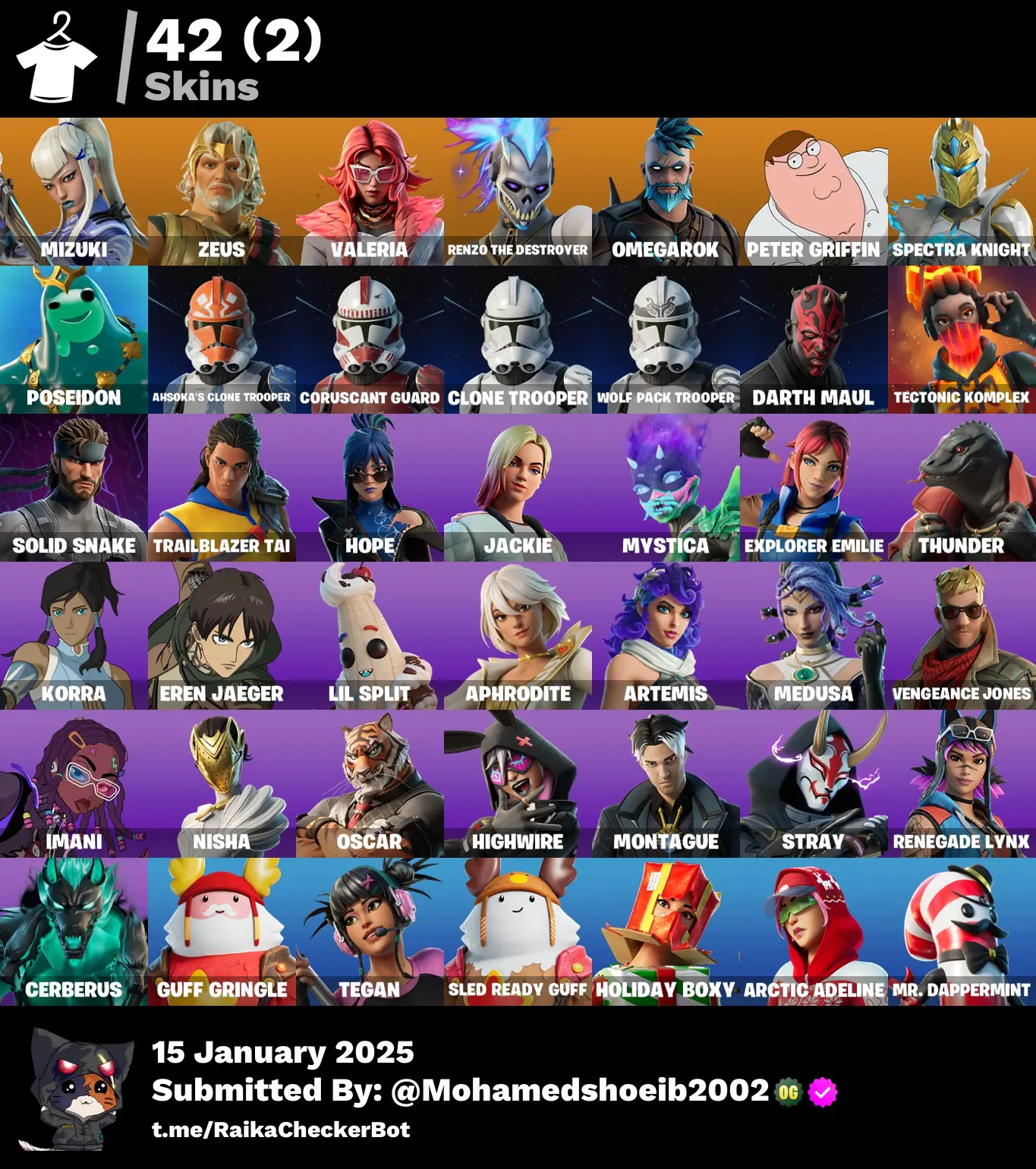 [PC/PSN/XBOX] 42 skins | Mizuki | Zeus | Valeria | Renzo the Destroyer | Omegarok | Peter Griffin | Spectra Knight | Poseidon | Ahsoka's Clone Trooper | 800 VB