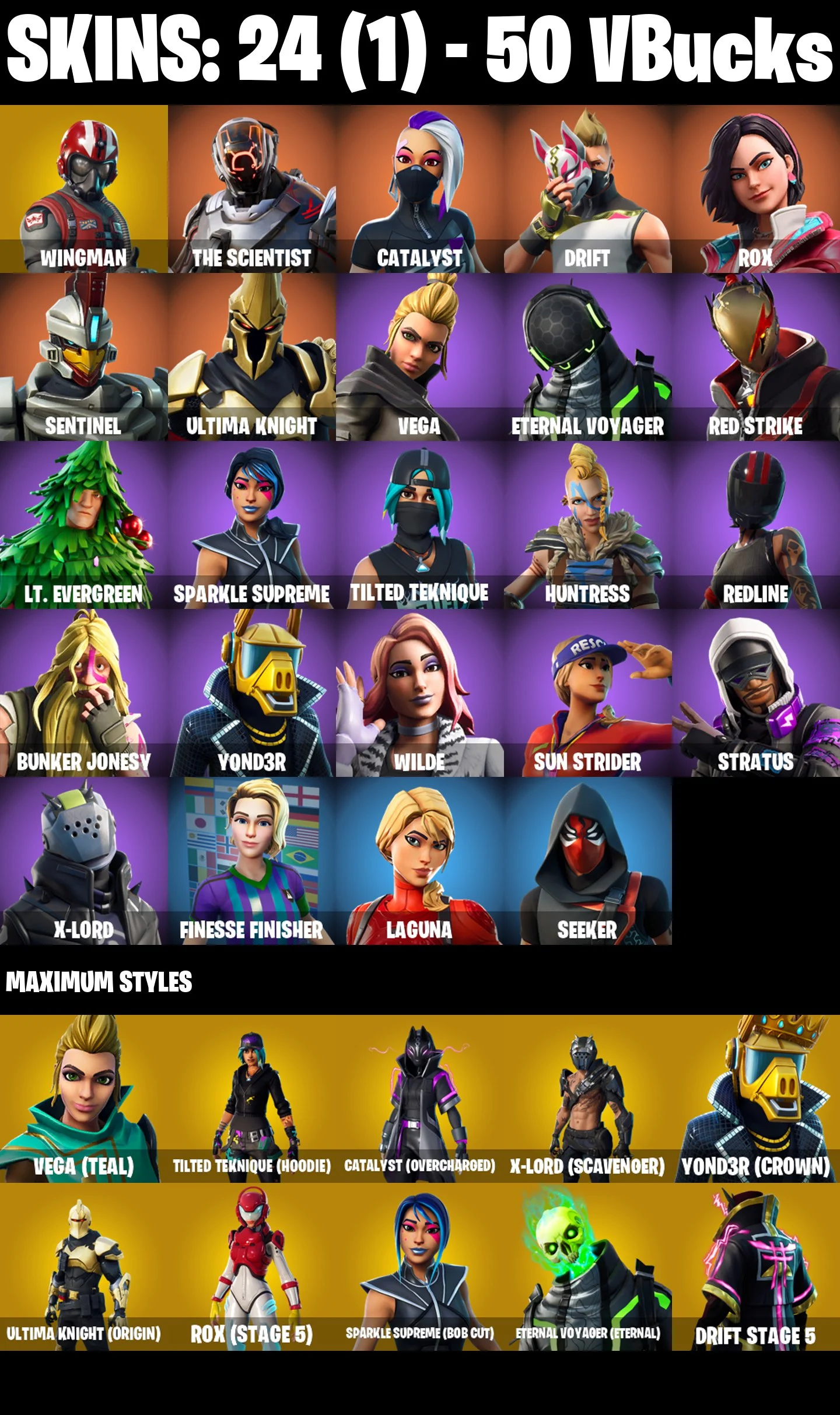 (PC/PSN/XBOX) 50 VB) 24 SKINS / WINGMAN / THE SCIENTIST / CATALYST / DRIFT / ROX / SENTINEL / ULTIMA KNIGHT / VEGA / ETERNAL VOYAGER /