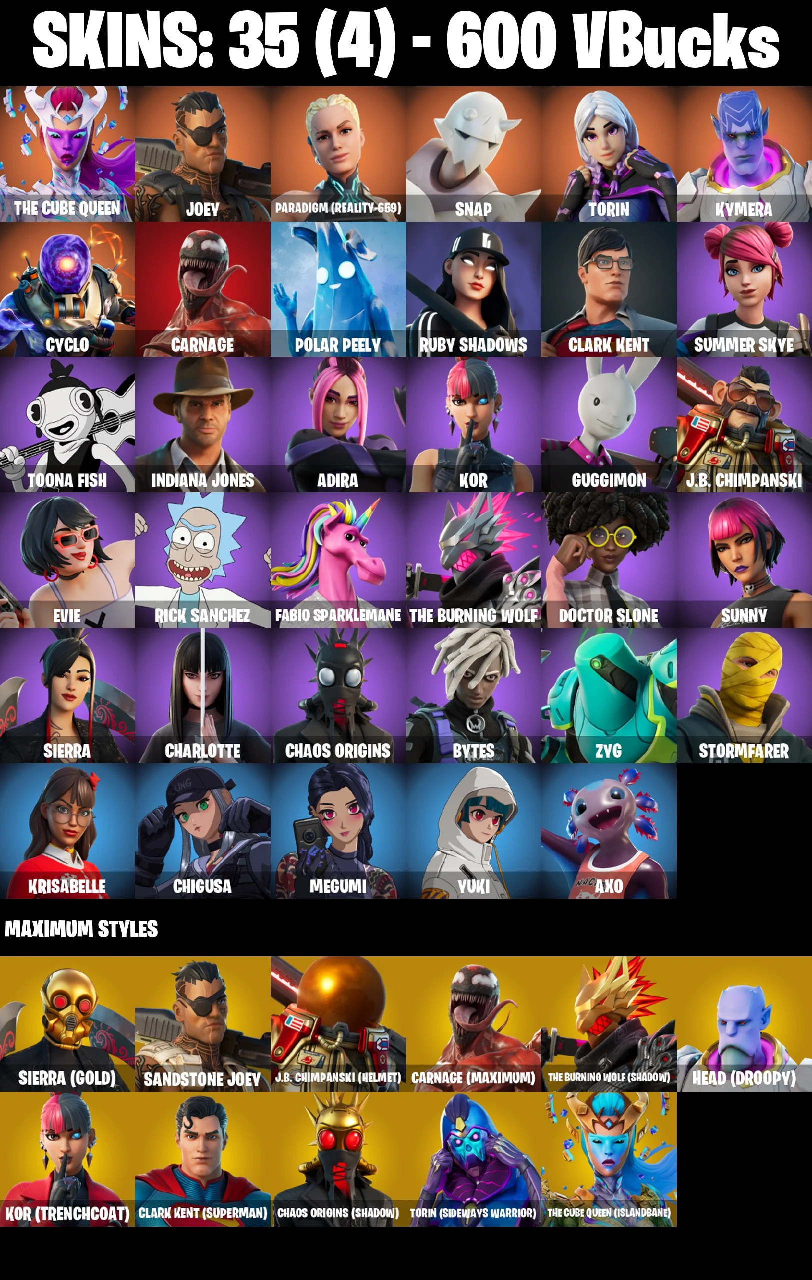 (PC/PSN/XBOX) 600 VB) 35 SKINS / THE CUBE QUEEN / JOEY / PARADIGM (REALITY-659) / SNAP / TORIN / KYMERA / CYCLO / CARNAGE / POLAR PEELY /