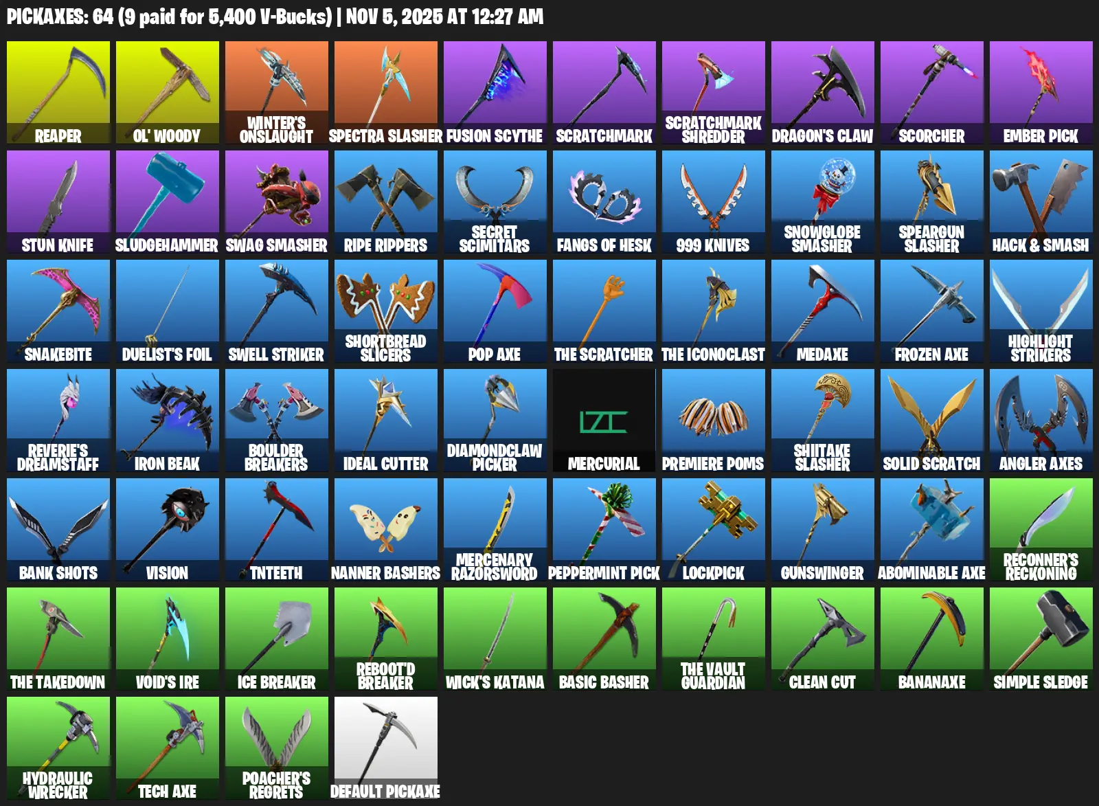 [PC/PSN/XBOX] | 69 skins | Reaper Axe | John Wick | Red Knight | Peter Griffin | Zenith | Fusion | Spectra Knight | Hybrid | #OLS9837 | #MBFN