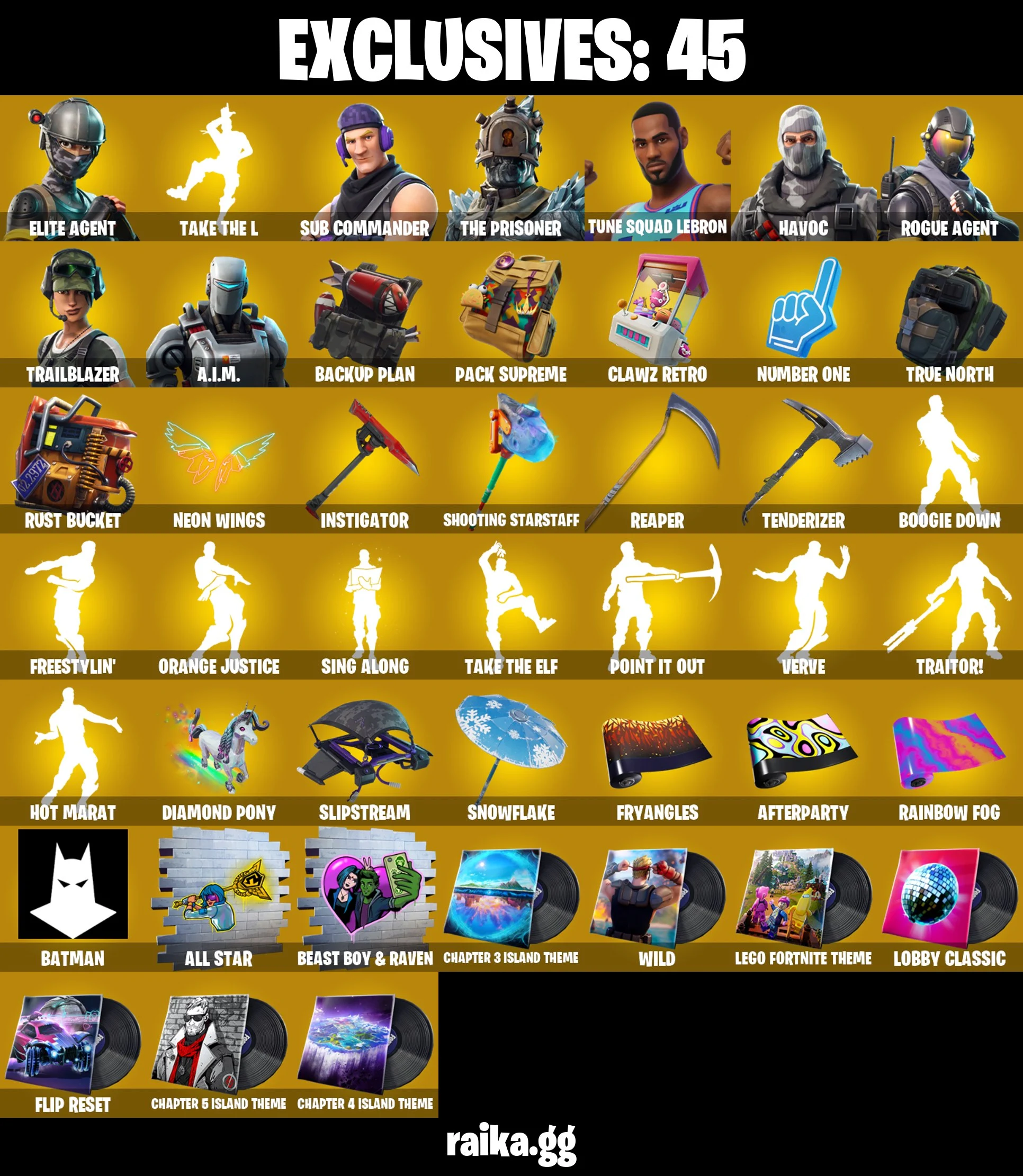 [PC/PSN/XBOX] 95 skins | Elite Agent | Sub Commander | Havoc | Rogue Agent | Trailblazer | The Squad Lebron | Y346