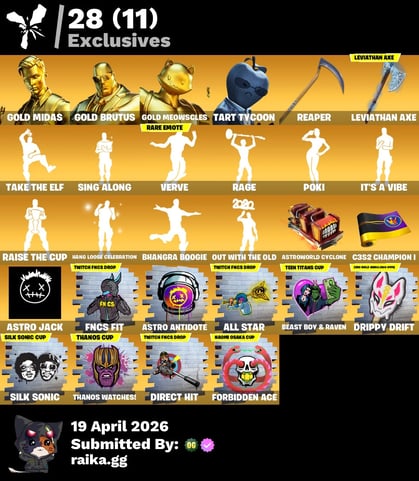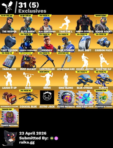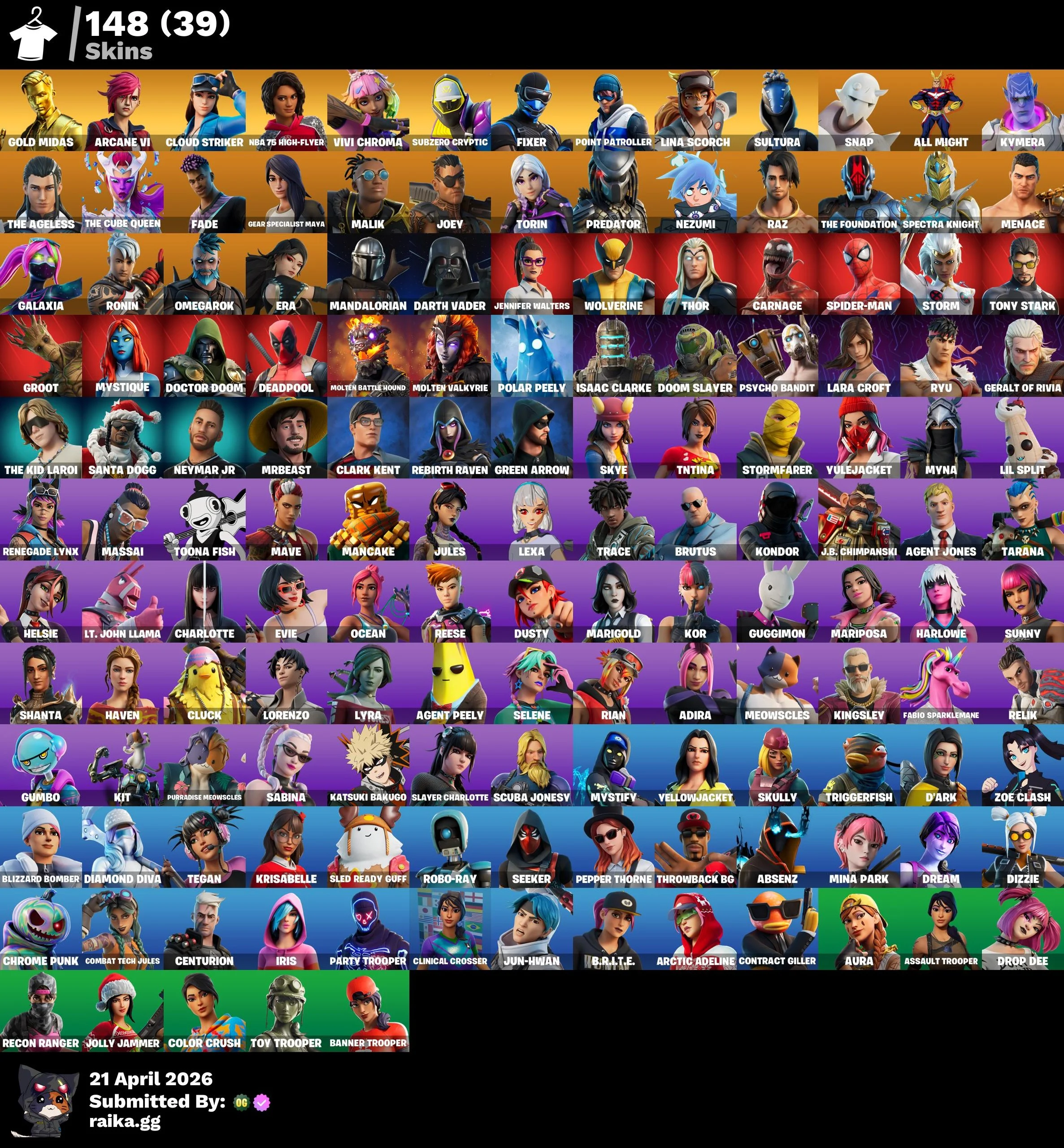 [PC/PSN/XBOX/Nintendo] 148 skins F/A : Leviathan Axe | Arcane Vi | Psycho Bandit | Gold Midas | Sultura | NBA 75 High-Flyer | Vivi Chroma | Fixer | Lina Scorch | Cloud Striker | Point Patroller