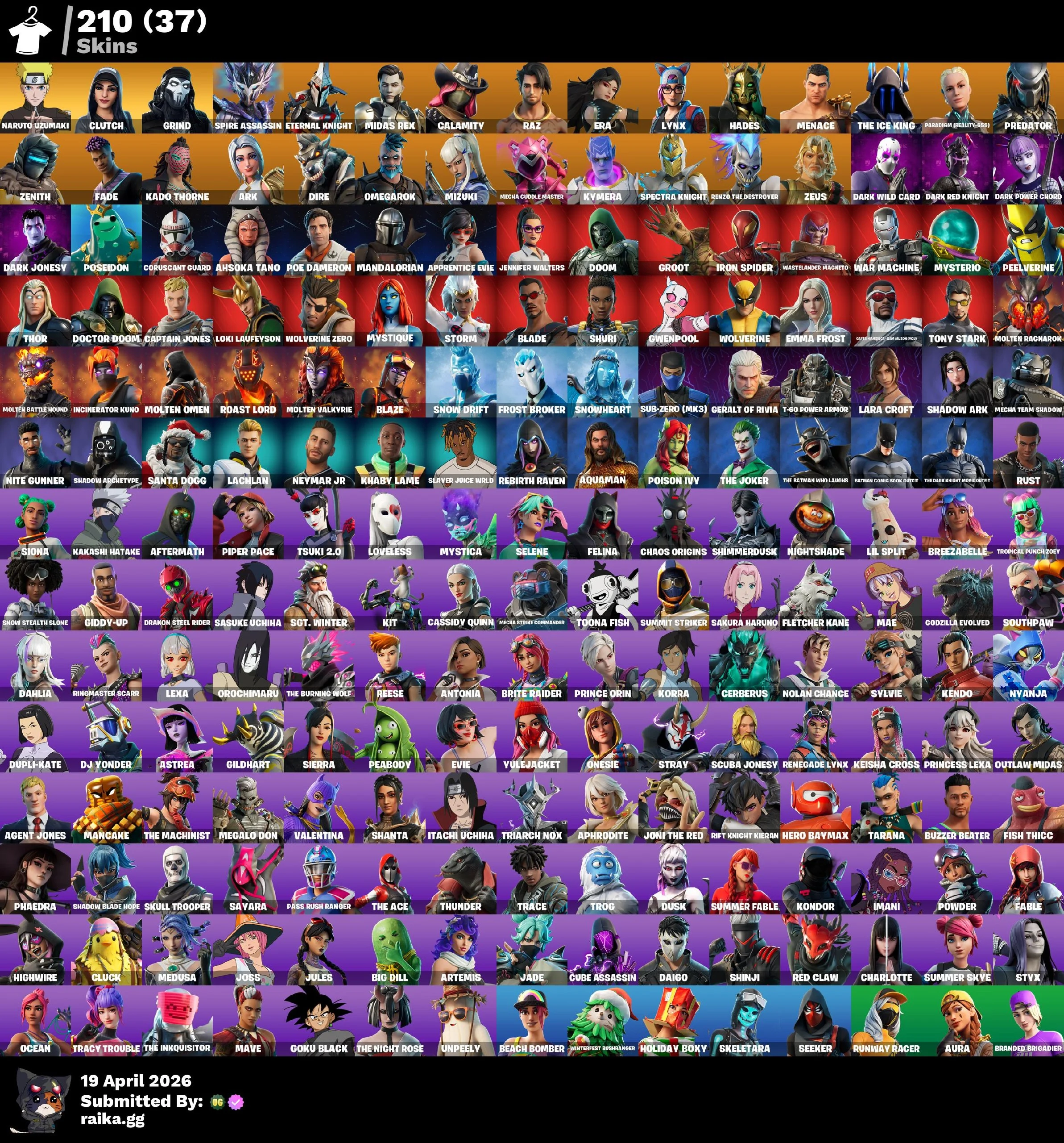 [PC/PSN/XBOX/Nintendo] 210 skins F/A : Sasuke Uchiha | Kakashi Hatake | Naruto Uzumaki | Sakura Haruno | Orochimaru | Goku Black | Itachi Uchiha | Grind | Clutch