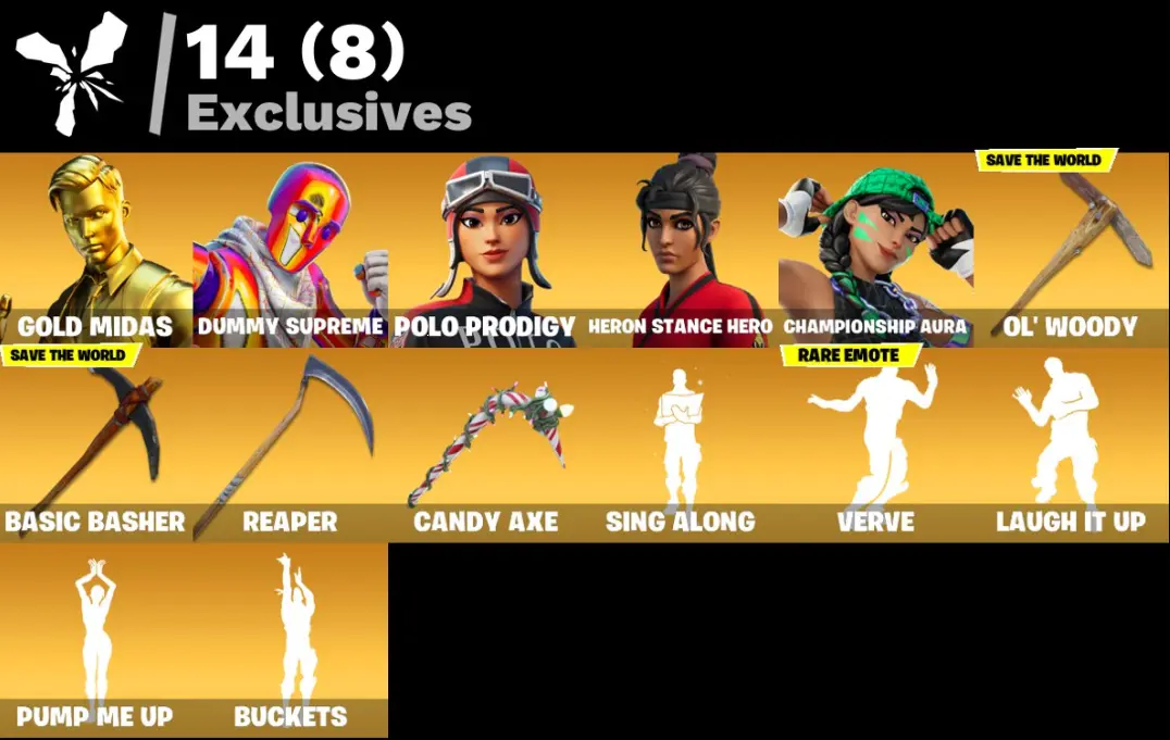 [PC/PSN/XBOX/SWITCH] 170 skins STW | Gold Midas | Dummy Supreme | Polo Prodigy | Heron Stance Hero | Championship Aura | Era | Gear Specialist Maya | Snap | Nezumi | 100 VB