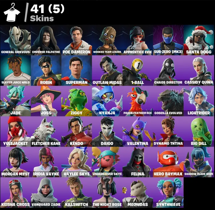 [PC/PSN/XBOX/SWITCH] 41 skins | General Grievous | Emperor Palpatine | Poe Dameron | Wookiee Team Leader | Apprentice Evie | Sub-Zero (MK3) | Santa Dogg | 1050 VB