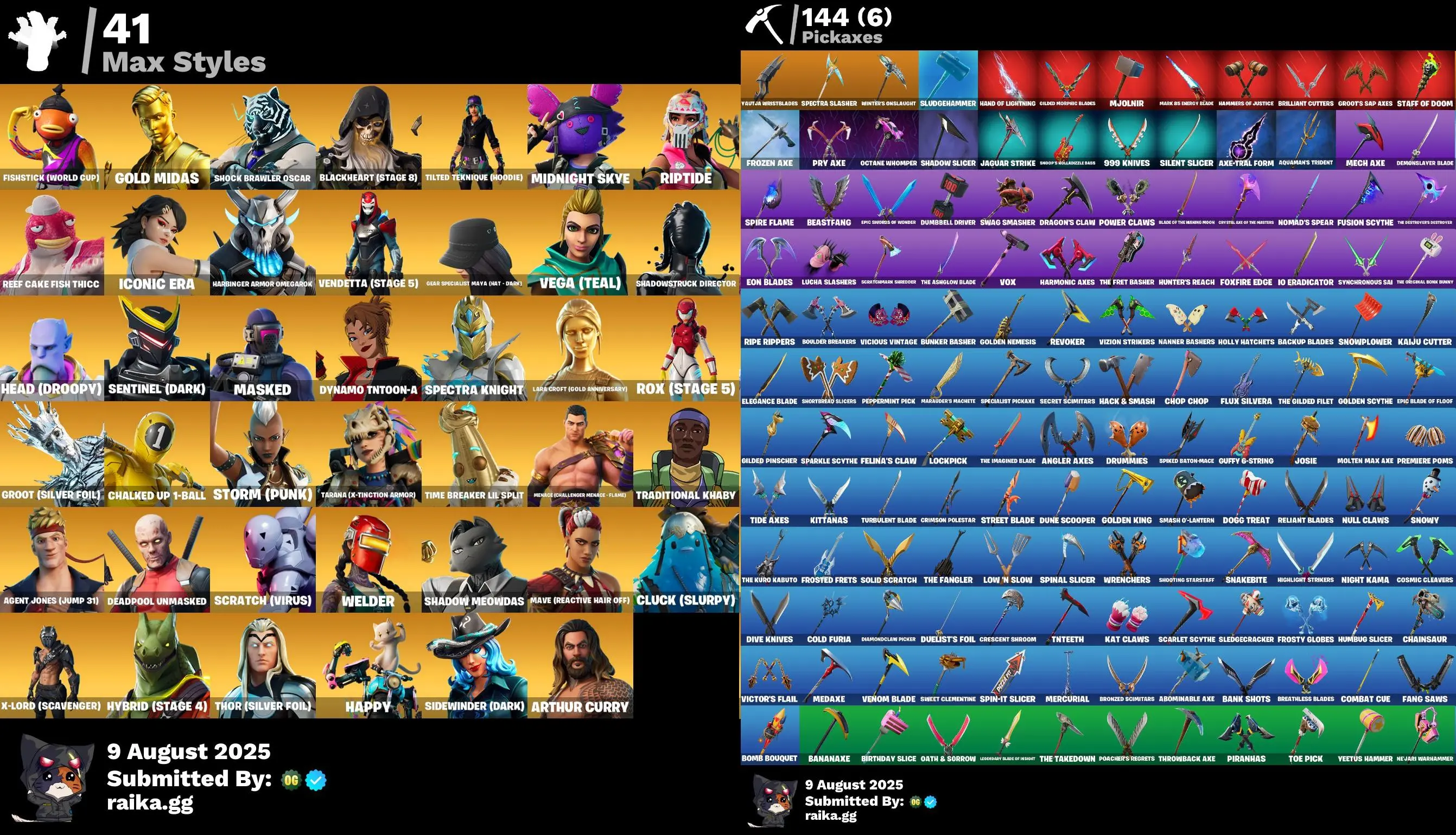 [PC/XBOX] 134 skins | Fishstick (World Cup) | Gold Midas | Take The Elf | Verve | Astroworld Cyclone MB41