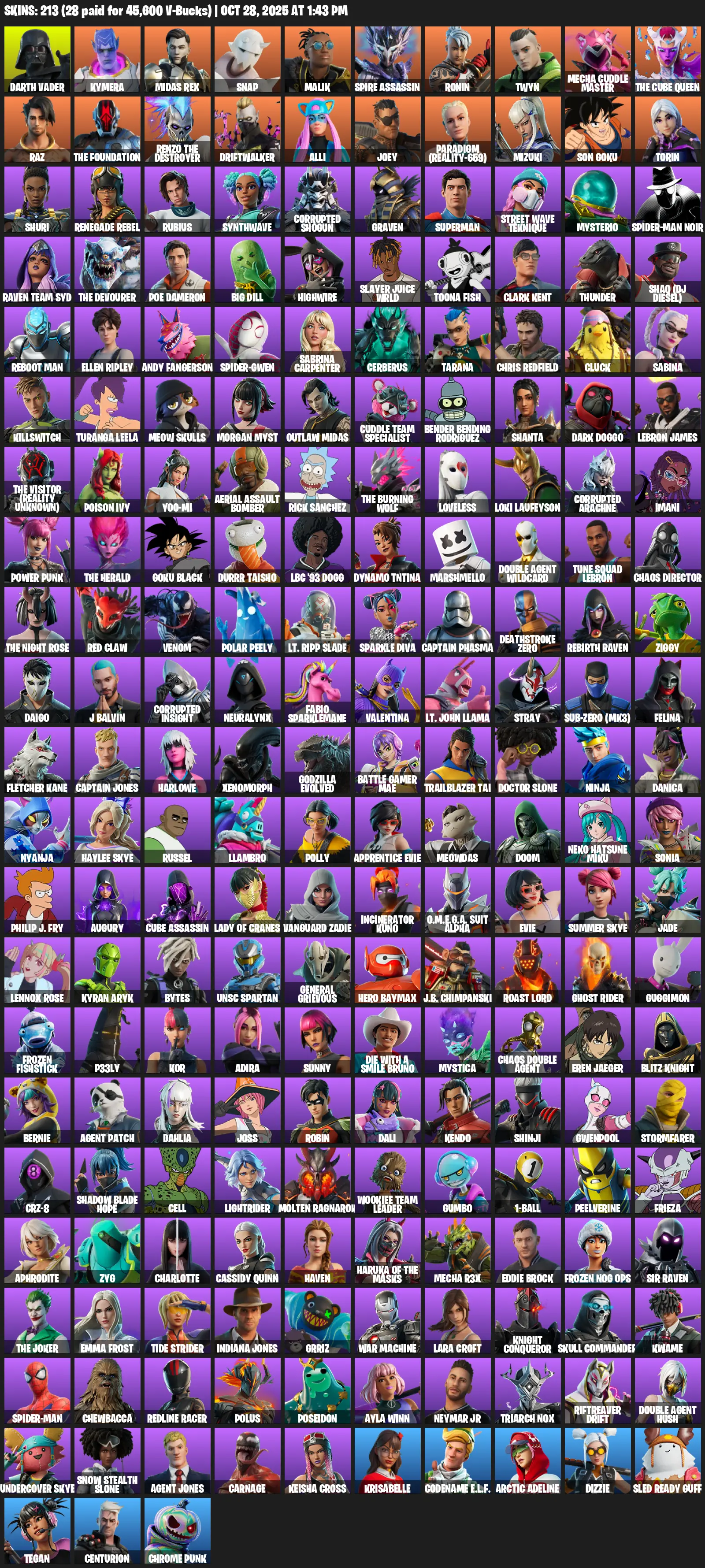 [PC/XBOX] | 213 skins | Lara Croft | Darth Vader | Kymera | Midas Rex | Snap | Malik | Spire Assassin | Ronin | Twyn | #BPQ8002 | #MBFN