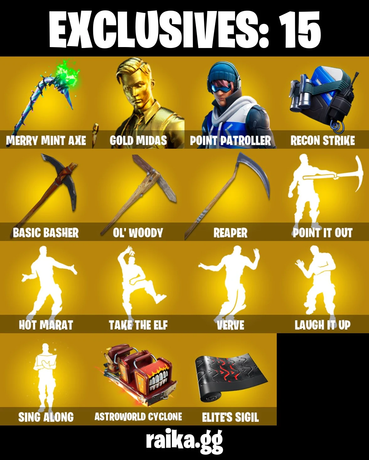 [PC/XBOX] 💻 259 Skins👕 | Renegade Raider🔥 | Gold Midas👑 | Point Patroller🎯 | OG Emotes💃 | Merry Mint Axe🪓 | 300 VBucks💸