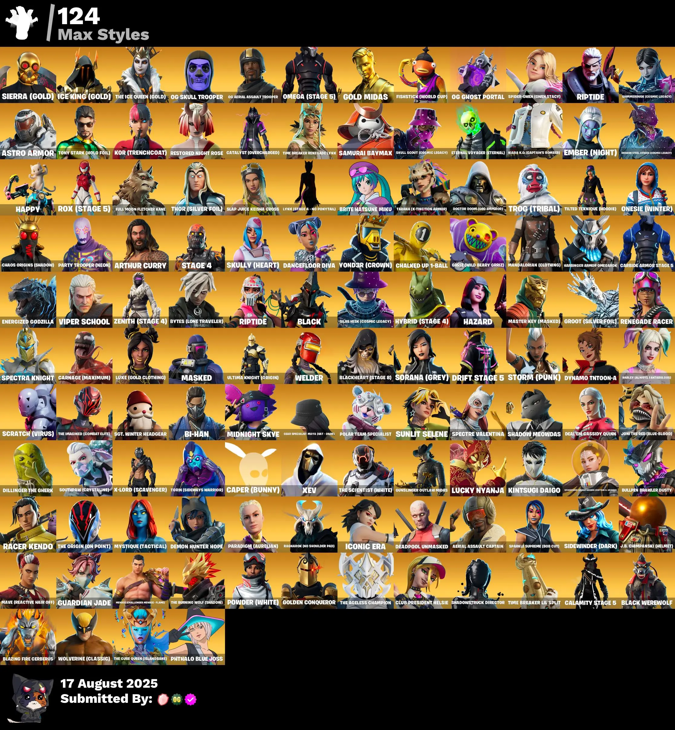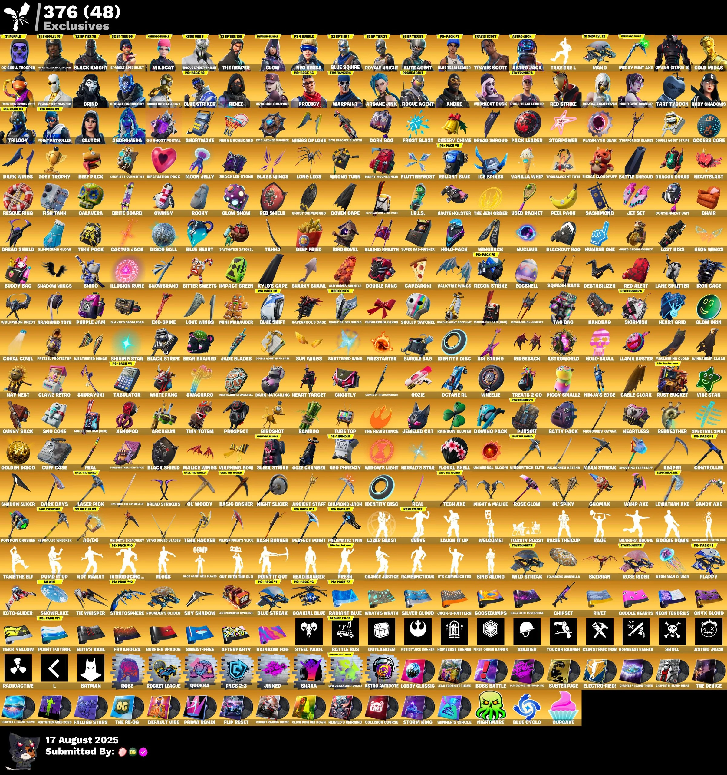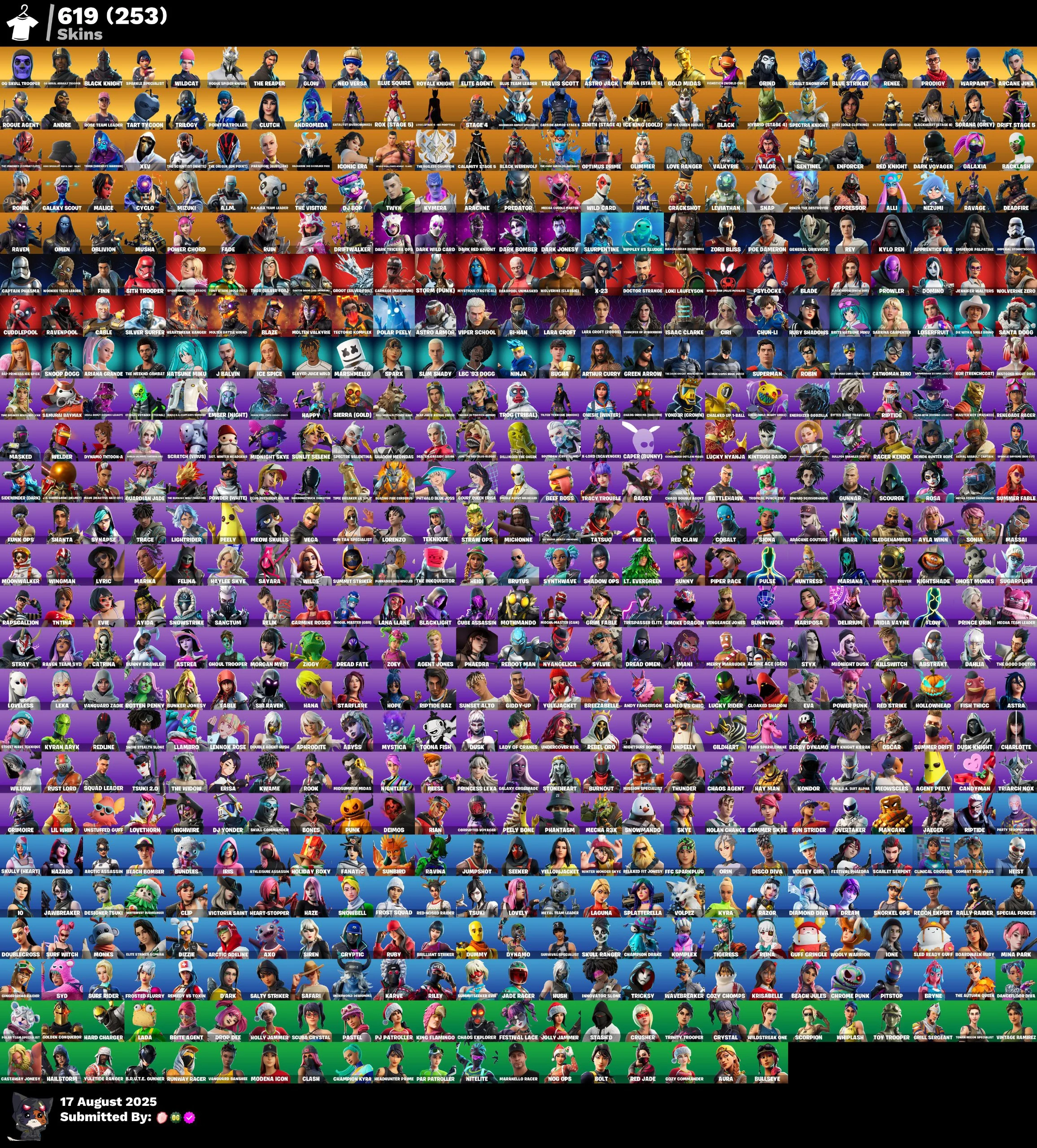 [PC/XBOX] 619 skins | OG STW | Og Skull Trooper | OG Aerial Assault Trooper | Black Knight | Sparkle Specialist | Wildcat | Rogue Spider Knight | 190 VB