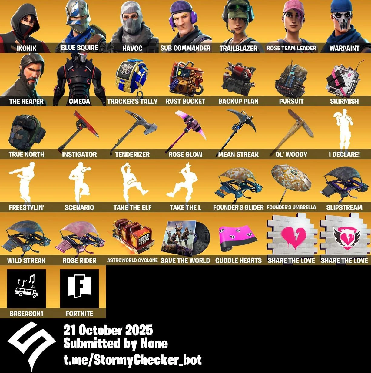 [PC/XBOX] | 62 Skins | OG STW | IKONIK | Blue Squire | Havoc | Sub Commander | Trailblazer | Rose Team Leader | Warpaint | Instigator | Tenderizer | Rose Glow | BRSeason1 | Fortnite | 800 VB