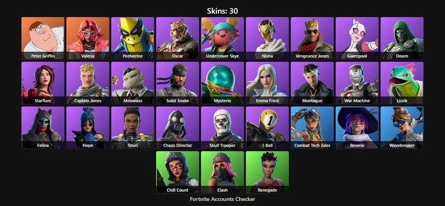 PC/XBOX/PSN 121 Skins⚡ | Deadpool | Chun-Li | Sultura | Valeria | Predator | Peter Griffin | Spectra Knight | Fusion | Nezumi | Hybrid | Mizuki | Mandalorian