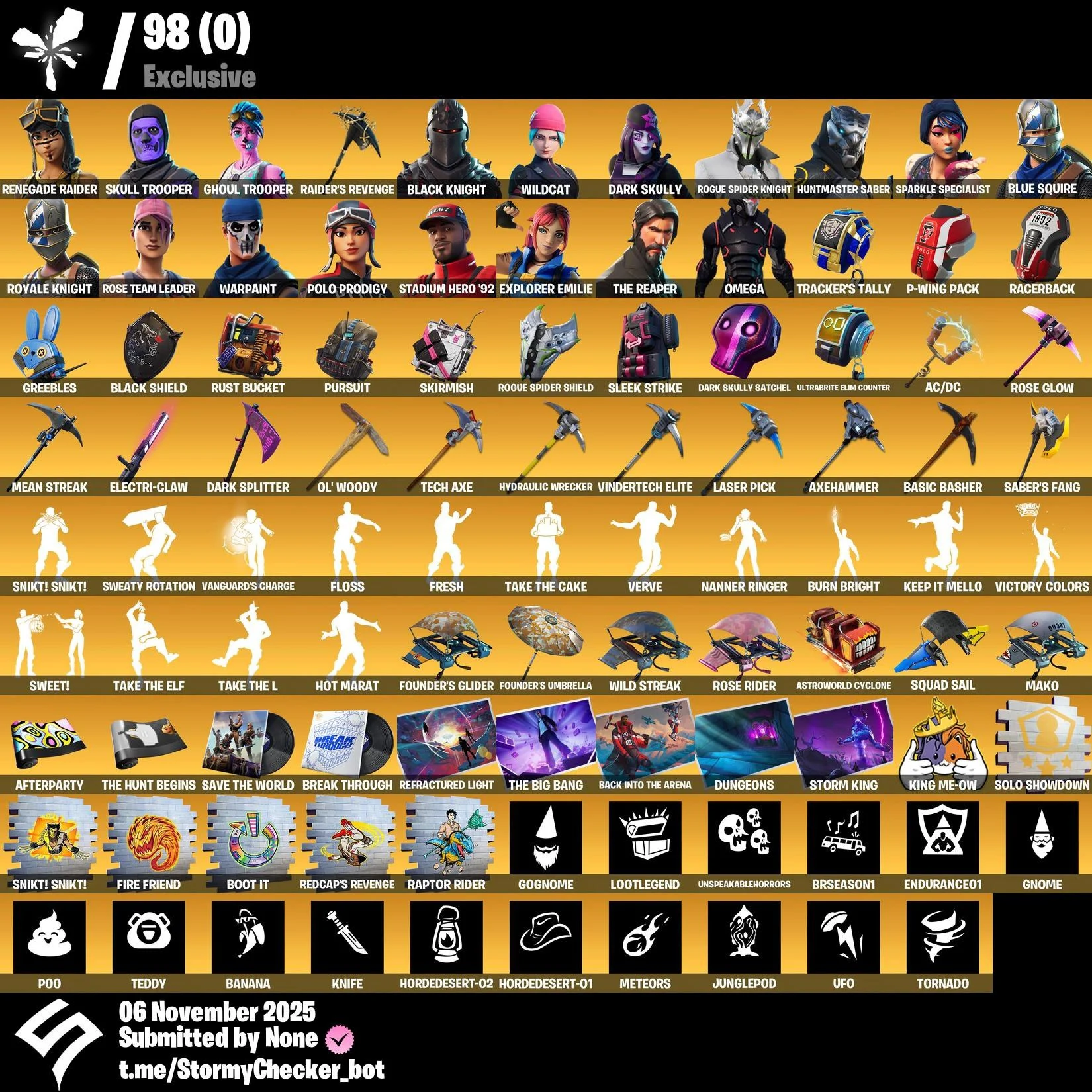 [PC/XBOX/PSN] | 506 Skins | OG STW | OG Renegade Raider | OG Skull Trooper | OG Ghoul Trooper | Black Knight | Wildcat | Dark Skully | OG Raider's Revenge | AC/DC | Rose Glow | GoGnome | LootLegend | UnspeakableHorrors | 600 VB