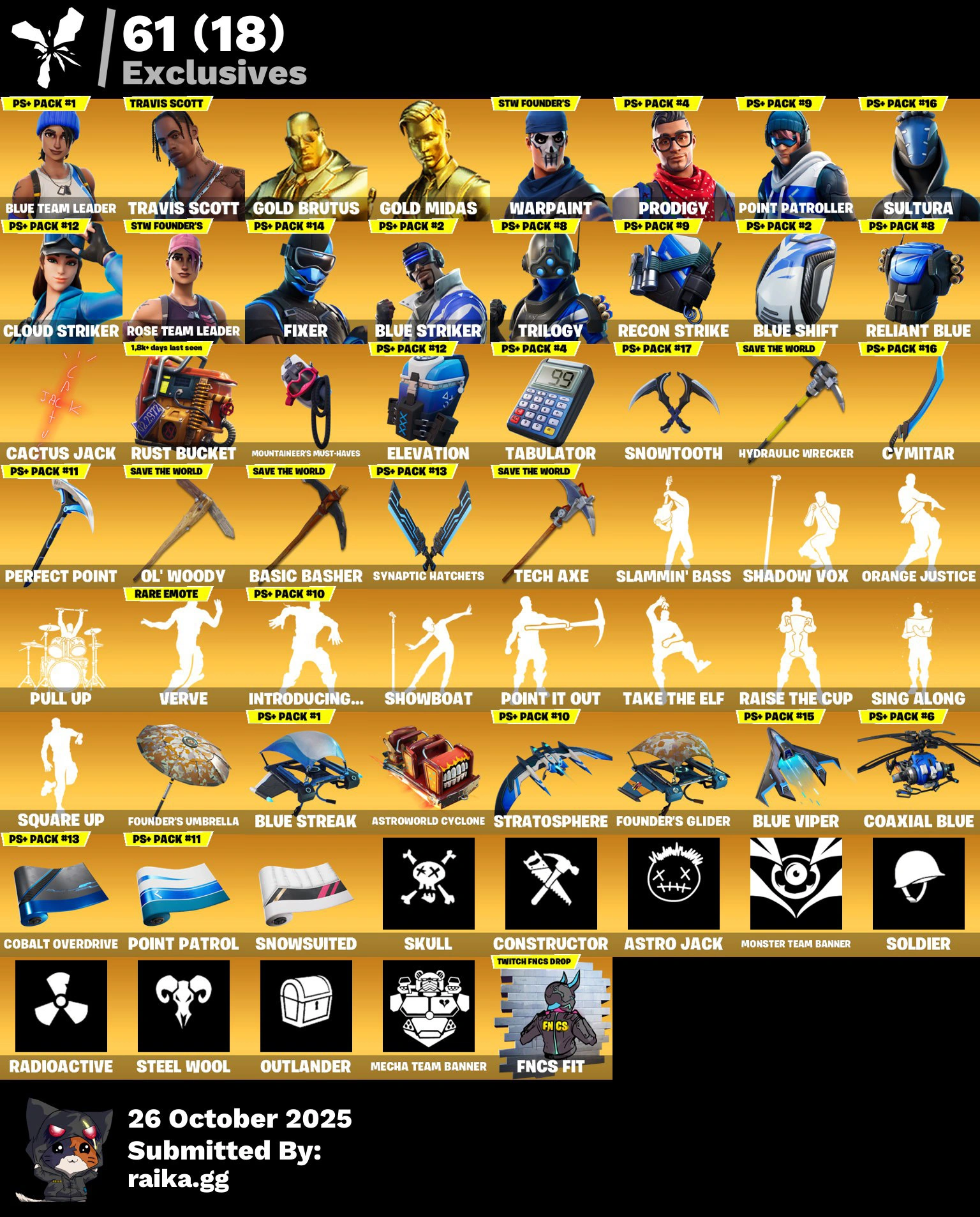 🔥 [ PSN/NITENDO/XBOX/PC ] 125 skins 🔥 OG STW Level 95 👑 Travis Scott 👑 Gold Brutus 👑 Gold Midas 👑 Fixer 👑 Blue Striker 👑 Triology ⭐ Take The ELF ✨ FULL ACCESS