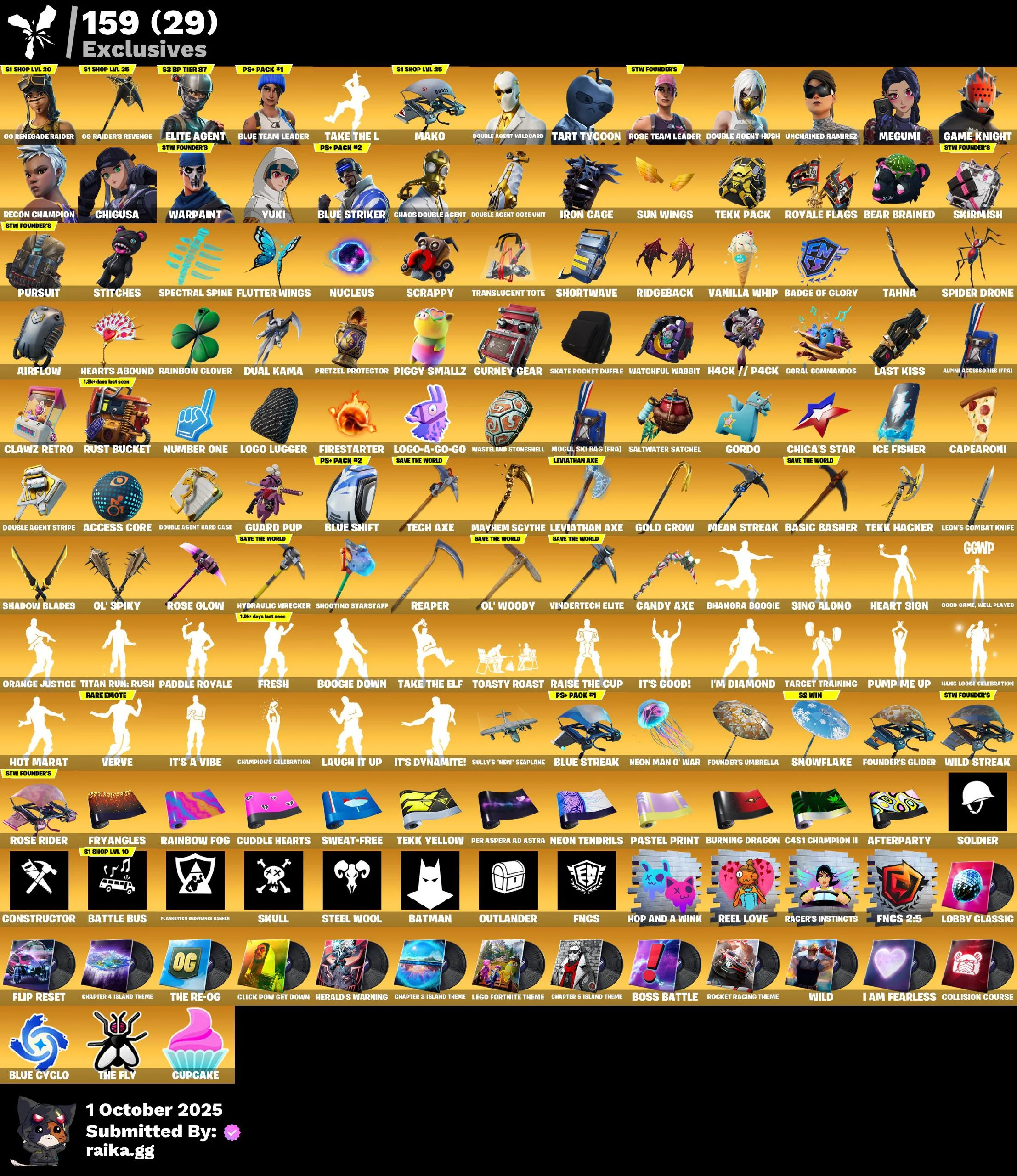 ULTIMATE OG COMBO 🚨 PC/XBOX/SWITCH 🔥 259 skins | OG STW | OG Renegade Raider | Og Raider's Revenge | Elite Agent | Blue Team Leader | Yuki | Megumi | Leviathan Axe | Candy Axe | Tart Tycoon | Unchained Ramirez | Game Knight | 315 VB