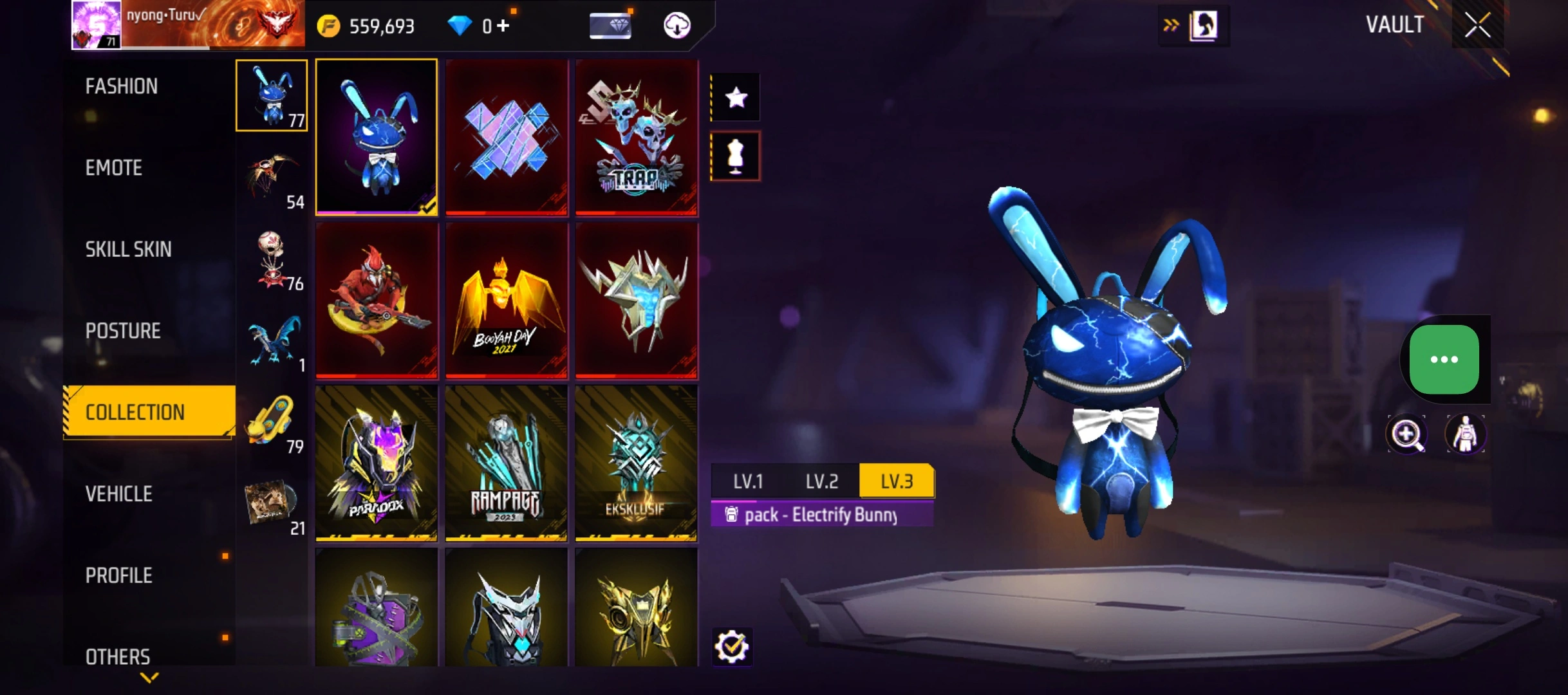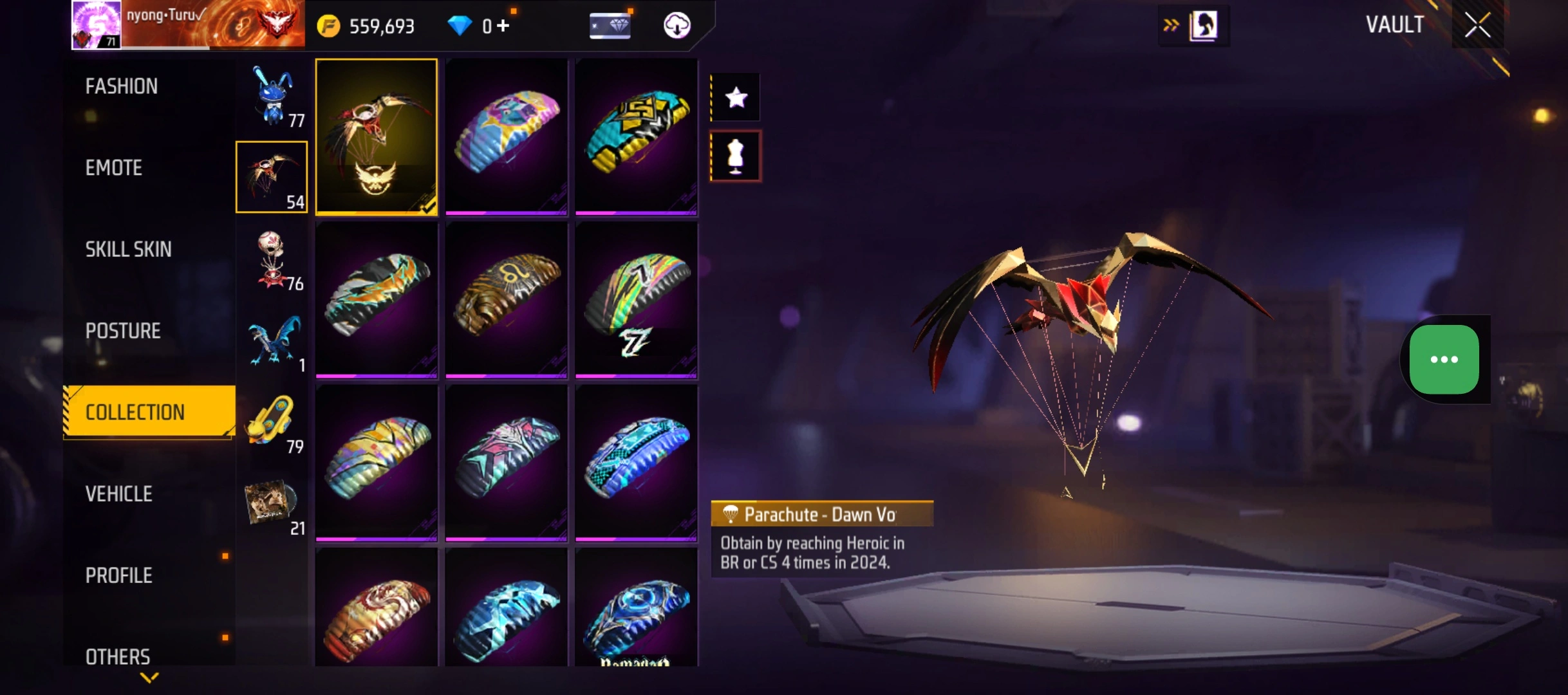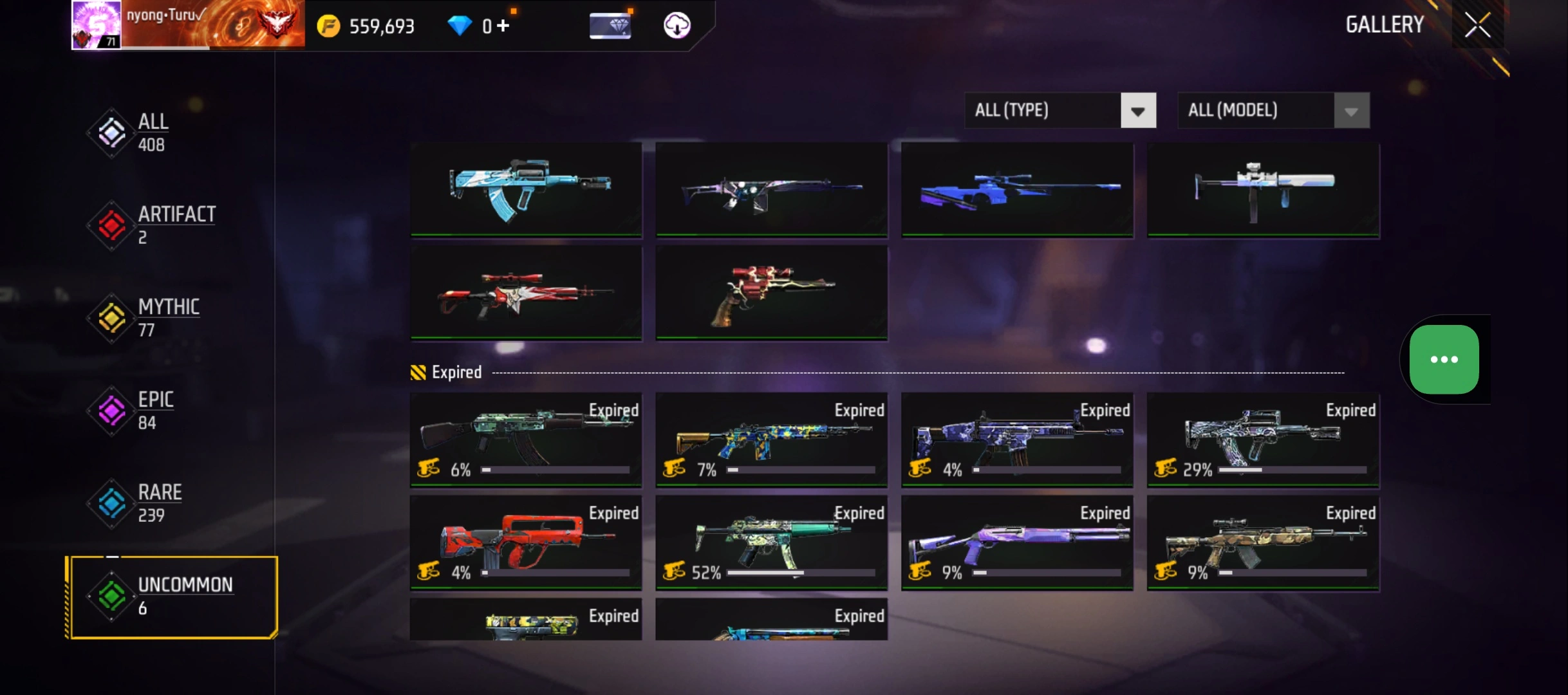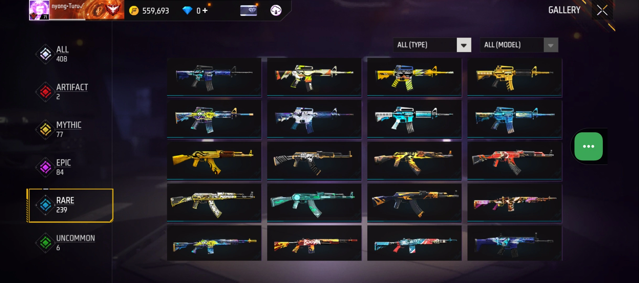 B23|LV71/408 WEAPON (2 EVO + 77 Mythic)/M1014 ⸱ Green Flame Draco Lv. Max/PARAFAL ⸱ Lore Cyclone Lv. 3/365 COSTUME (19 Mythic)/55 EMOT (1 Artifact + 19 Mythic)/77 BACKPACK (5 Artifact + 34 Mythic)/9 SPORTS CAR (2 Mythic)