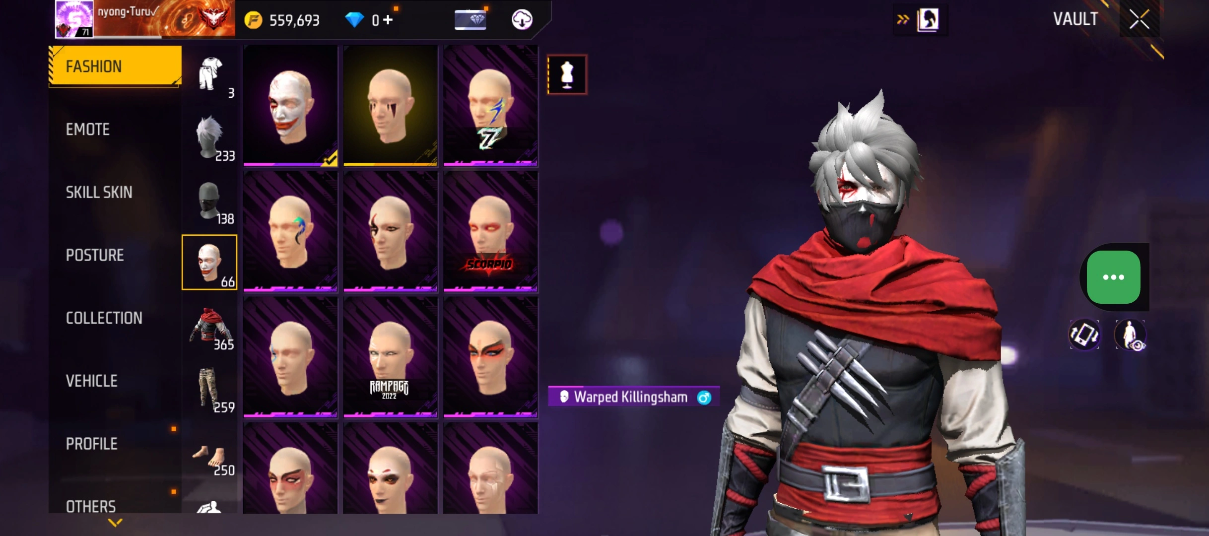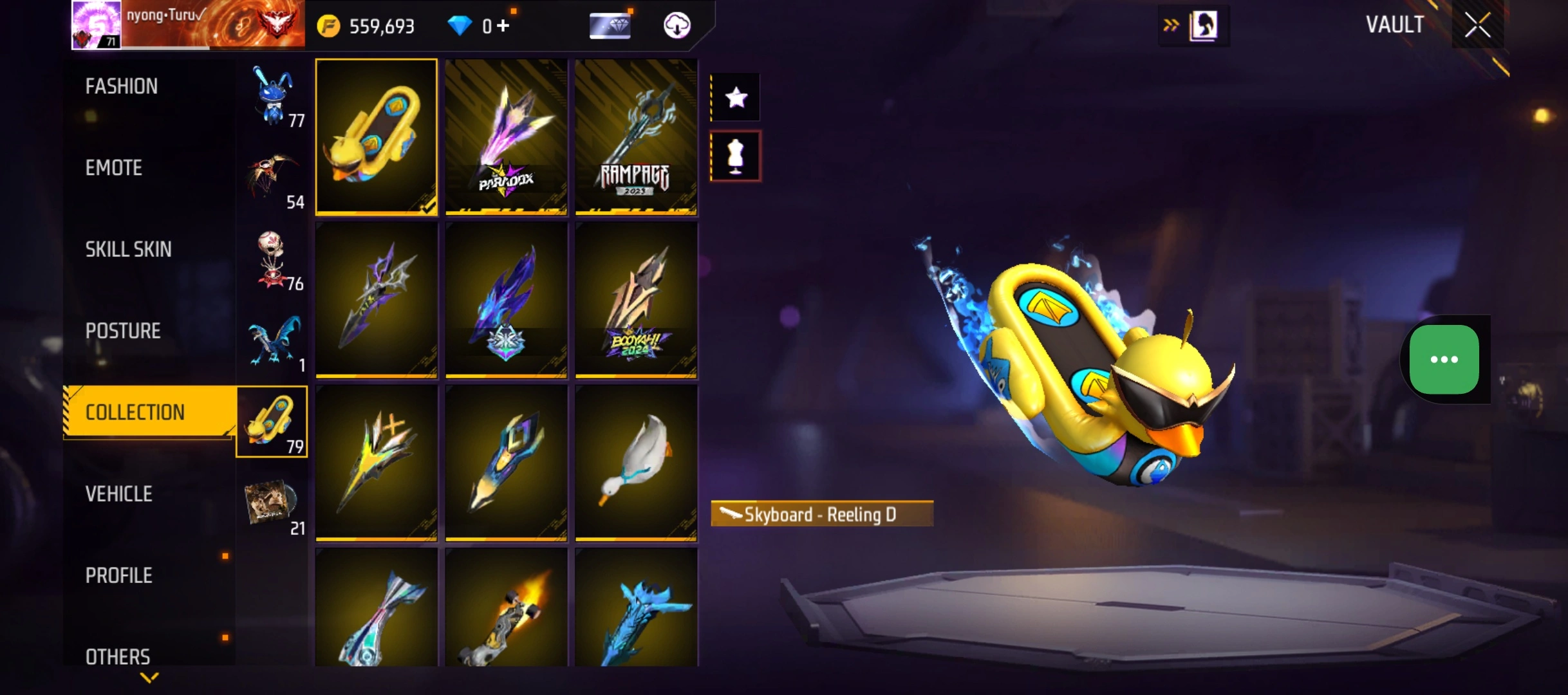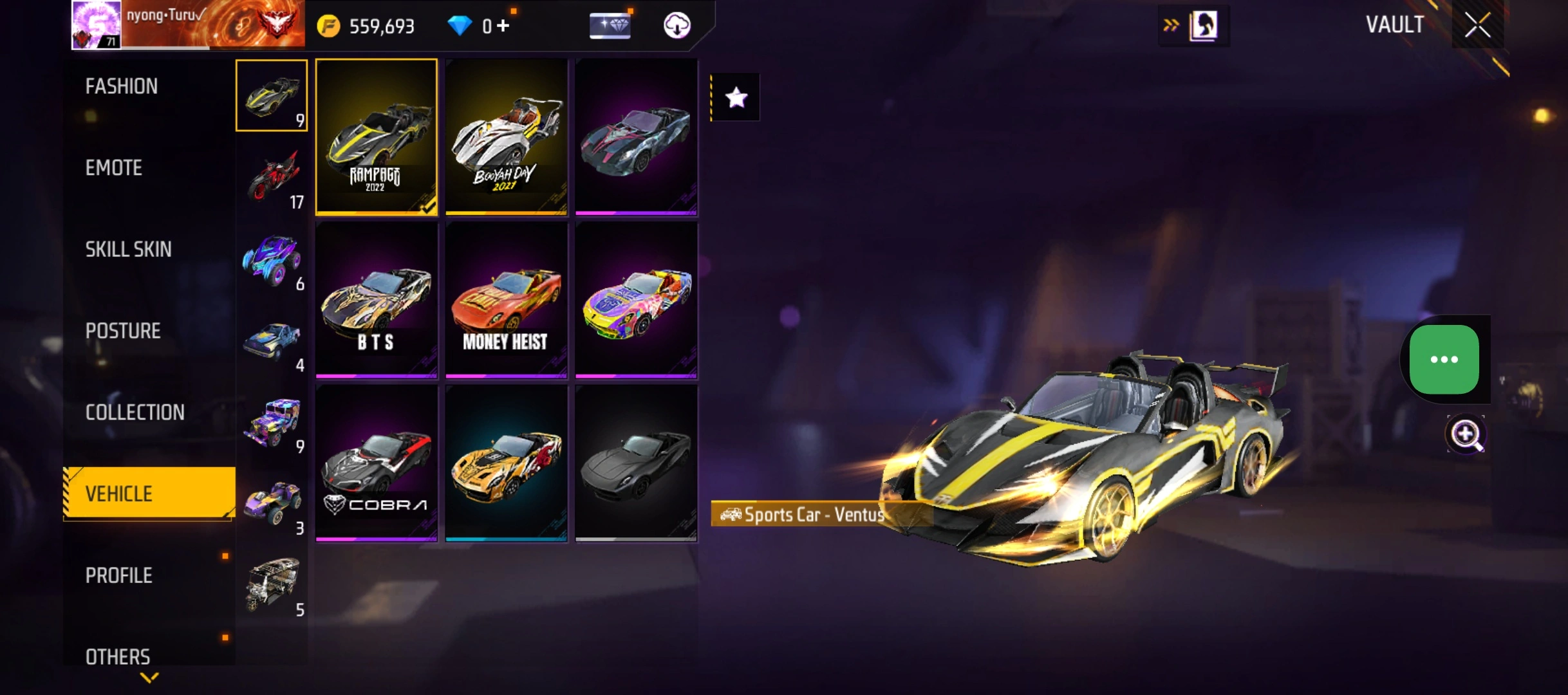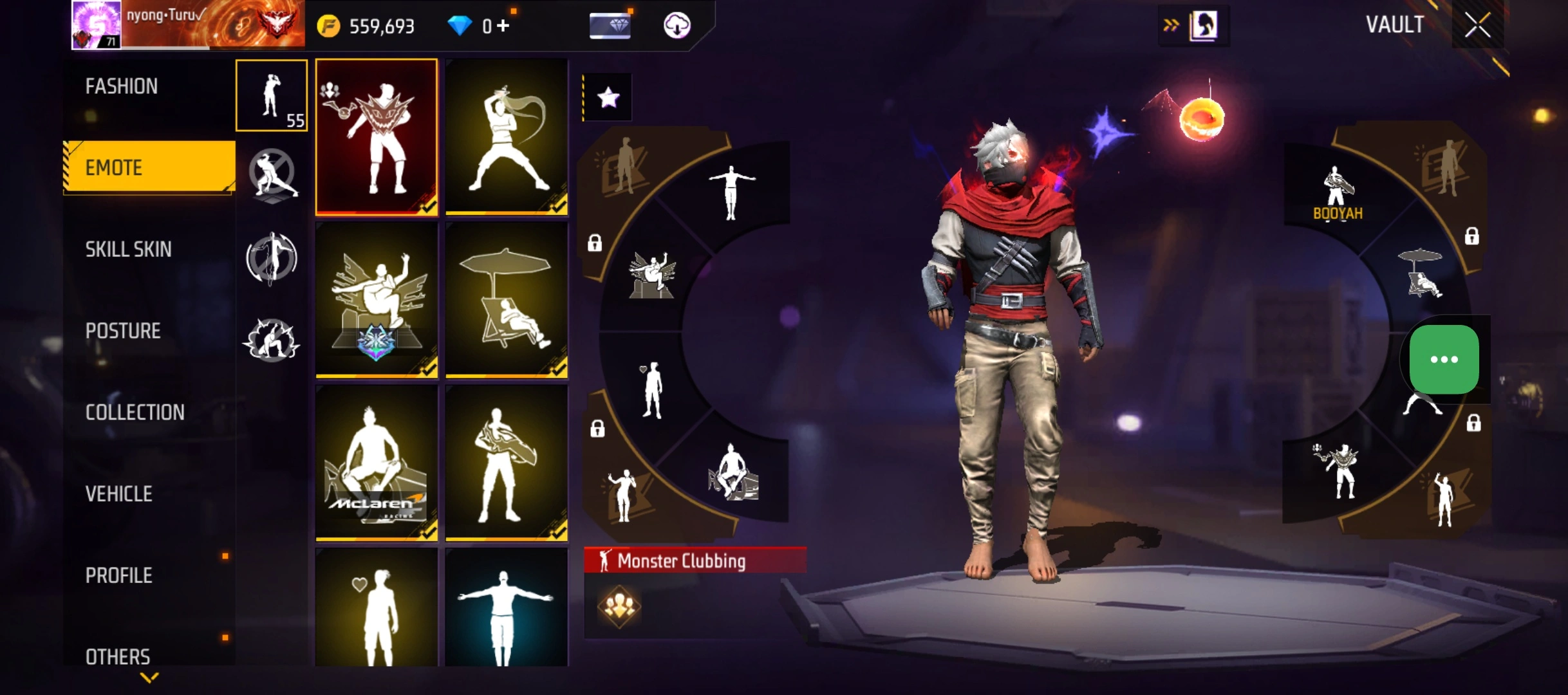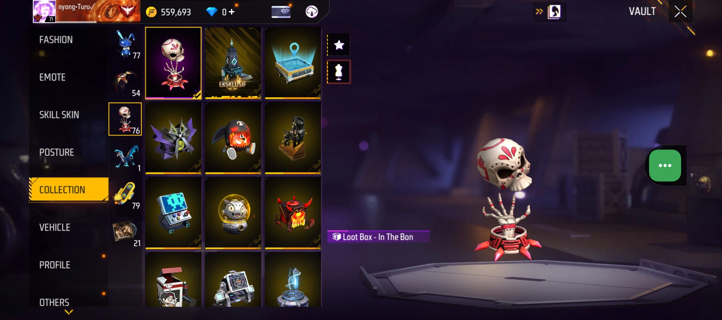 B23|LV71/408 WEAPON (2 EVO + 77 Mythic)/M1014 ⸱ Green Flame Draco Lv. Max/PARAFAL ⸱ Lore Cyclone Lv. 3/365 COSTUME (19 Mythic)/55 EMOT (1 Artifact + 19 Mythic)/77 BACKPACK (5 Artifact + 34 Mythic)/9 SPORTS CAR (2 Mythic)
