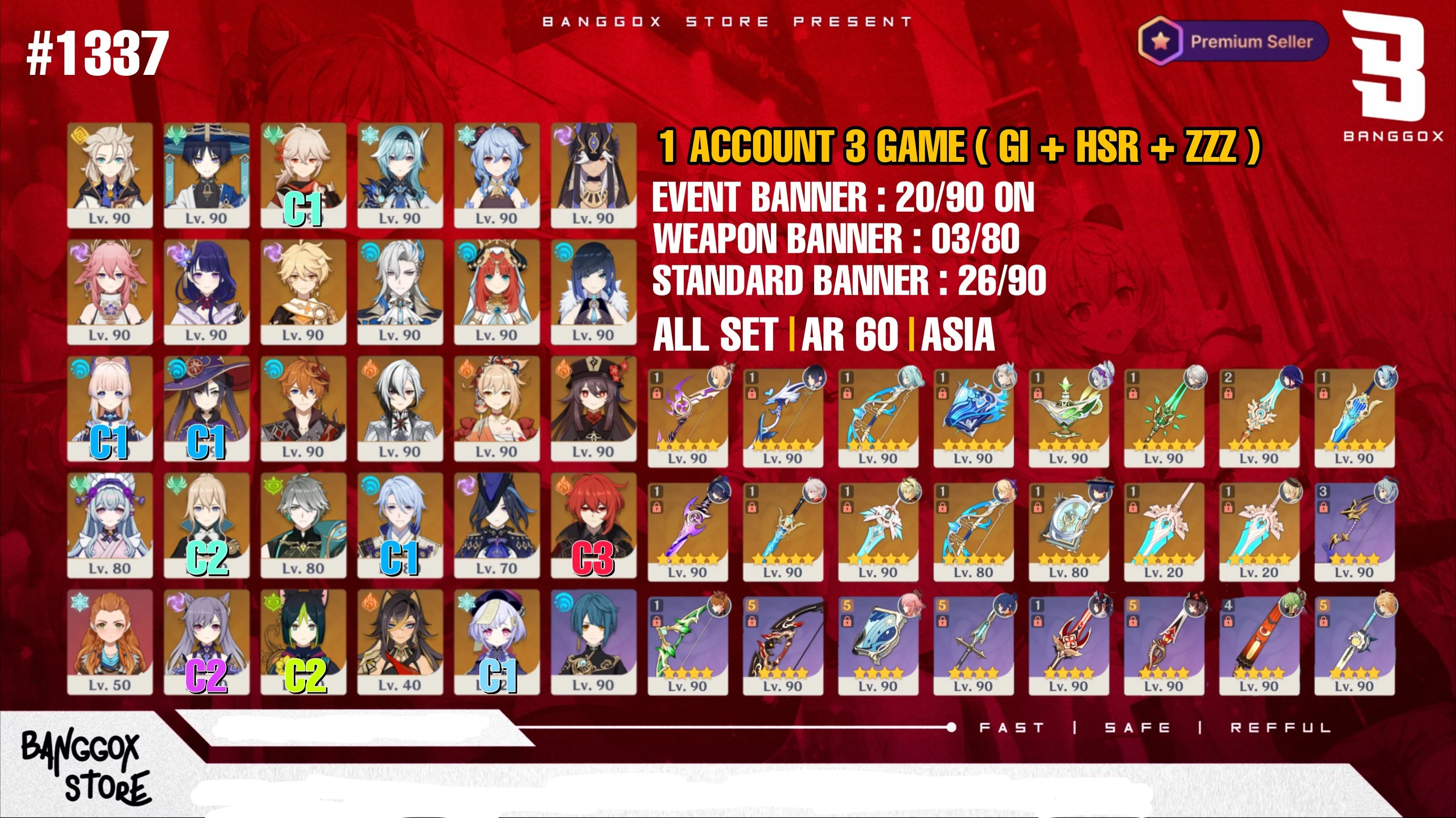 ASIA AR 60 AYATO C1 KOKOMI C1 KAZUHA C1 ACCOUNT 3 GAME ( HSR + GI + ZZZ )