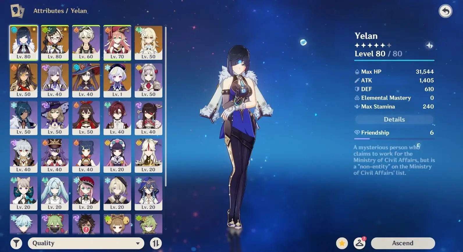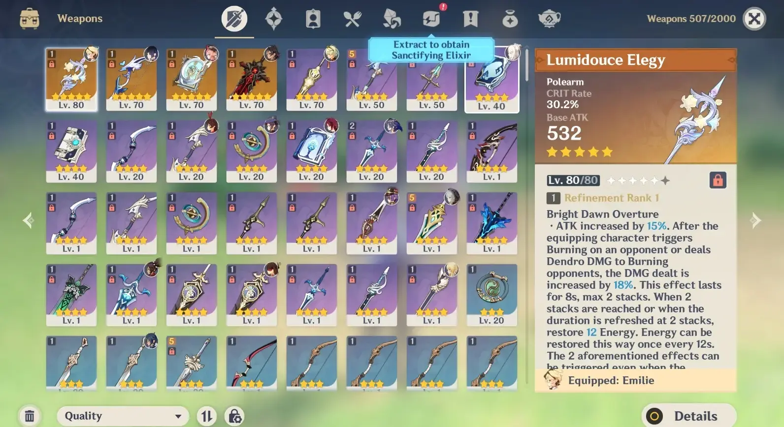 EU AR50 | 5 stars*10 Dehya | Emilie(C1) | Keqing | Mona | Qiqi | Yelan | Aqua Simulacra | Lost Prayer to the Sacred Winds | Lumidouce Elegy | Wolf's Gravestone | lots of 4* characters and weapons