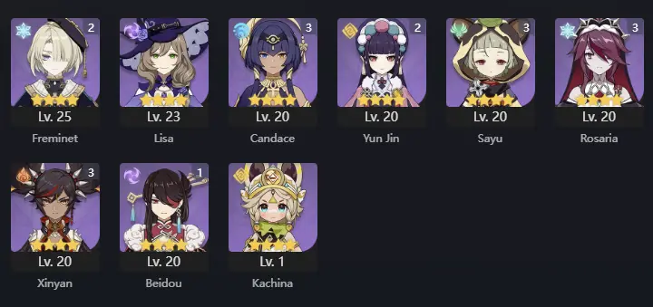 | Tighnari | Keqing | Diluc | Mona | Jean