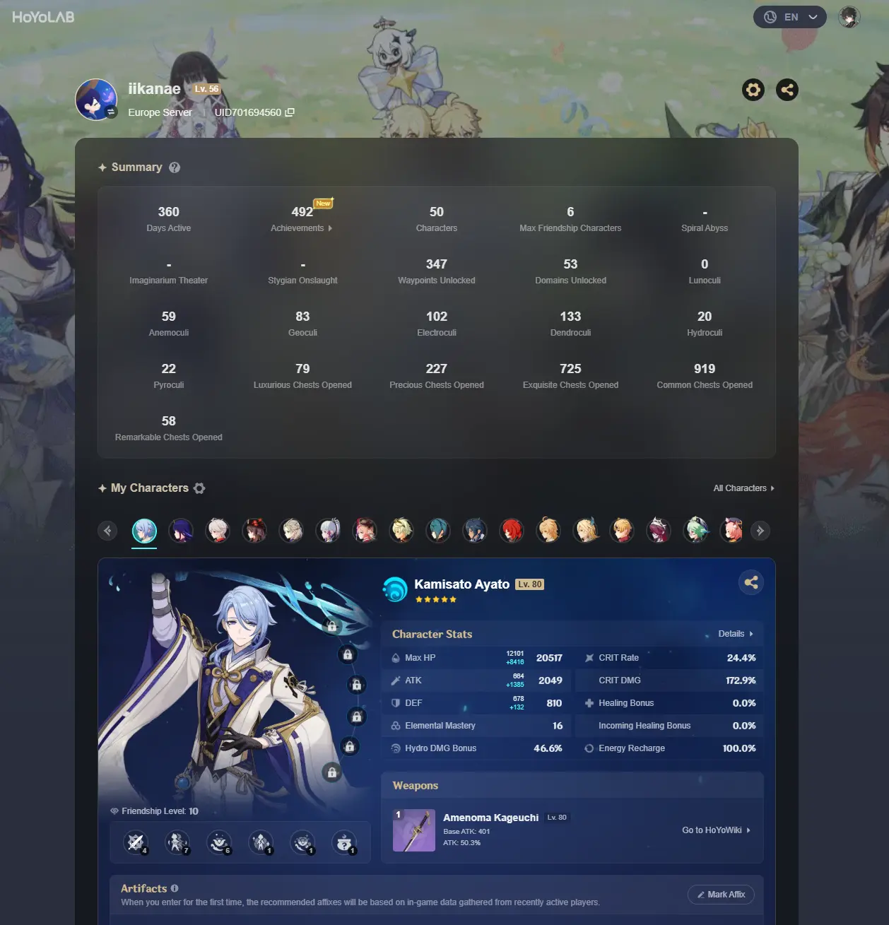 #GE701 [EU] AR 56 | 20 LEGS | Xilonen+Xianyun+Ayato+Raiden+Kazuha+Hu Tao+Albedo+Ayaka+Qiqi C3 | FULL ACCESS + EMAIL