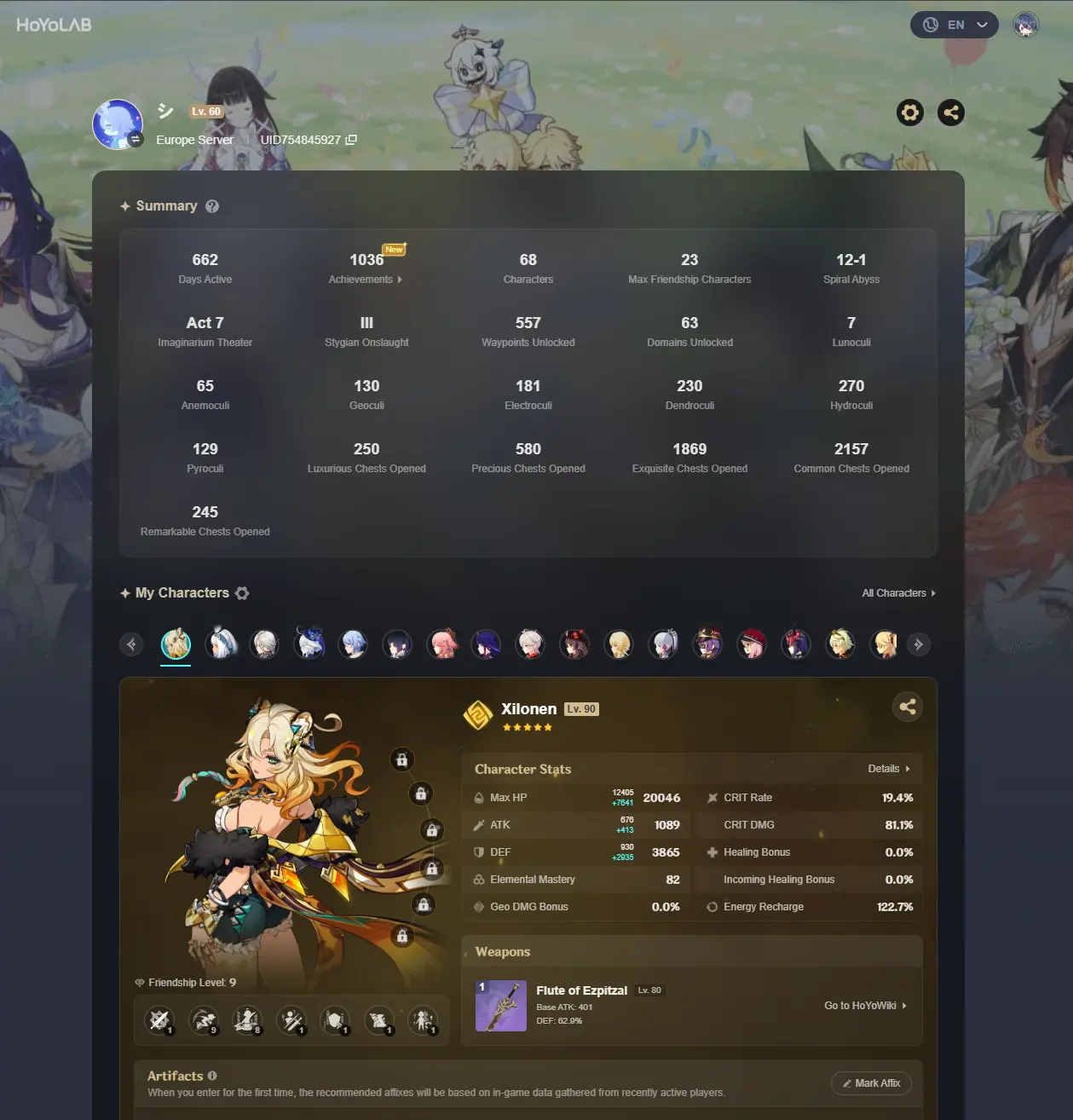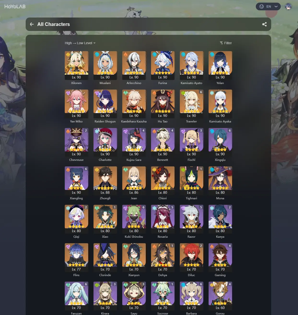#GE703 [EU] AR 60 | 40 LEGS | Flins+Xilonen+Mualani+Arlecchino+Furina+Clorinde+Ayato+Yelan+Yae Miko+Raiden+Kazuha+Xiao C1+MORE! | FULL ACCESS + EMAIL
