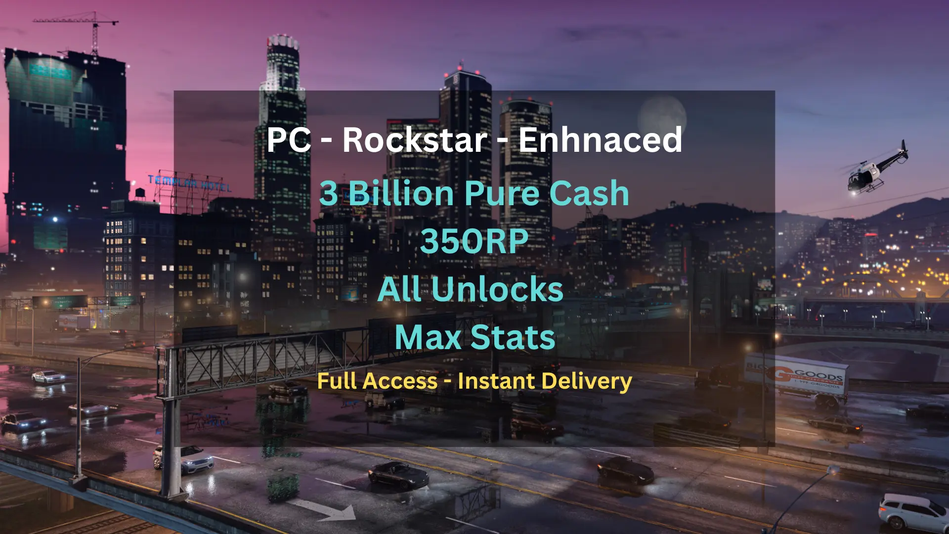 PC ⸱ (ROCKSTAR) 350 RP Level ♨️3 Billion Cash💸 Full Access ✅ 【Anti-Ban】✅ GTA V Enhanced