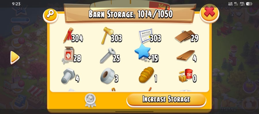 100 level | 10000 Barn Storage | Silo Storage 3000 | 10M Coin | 900 gems | Android & IOS