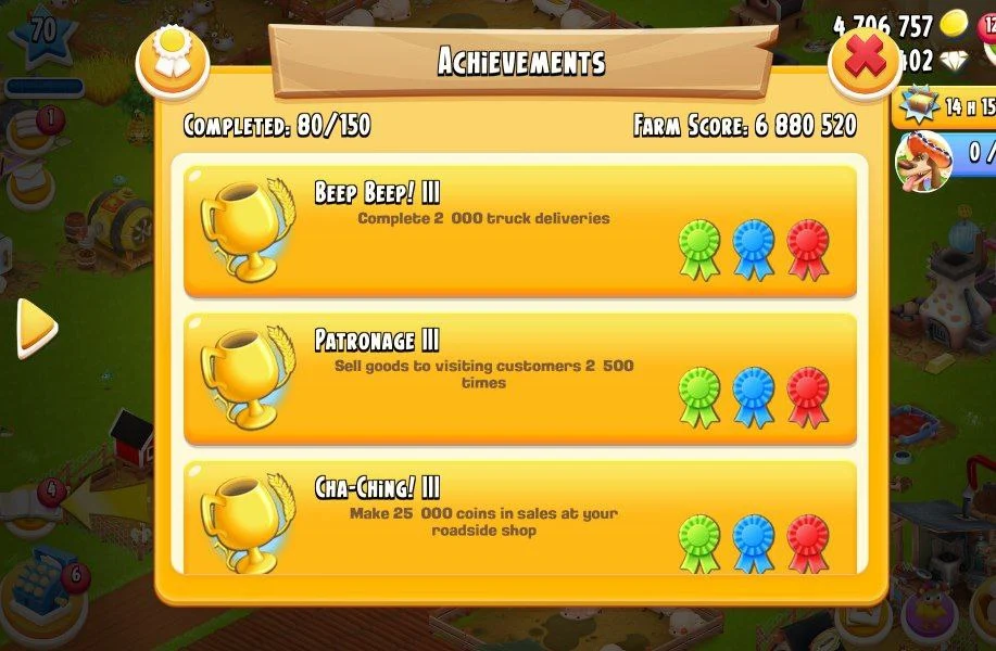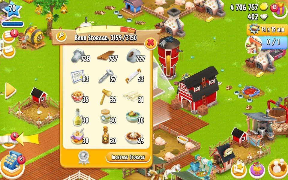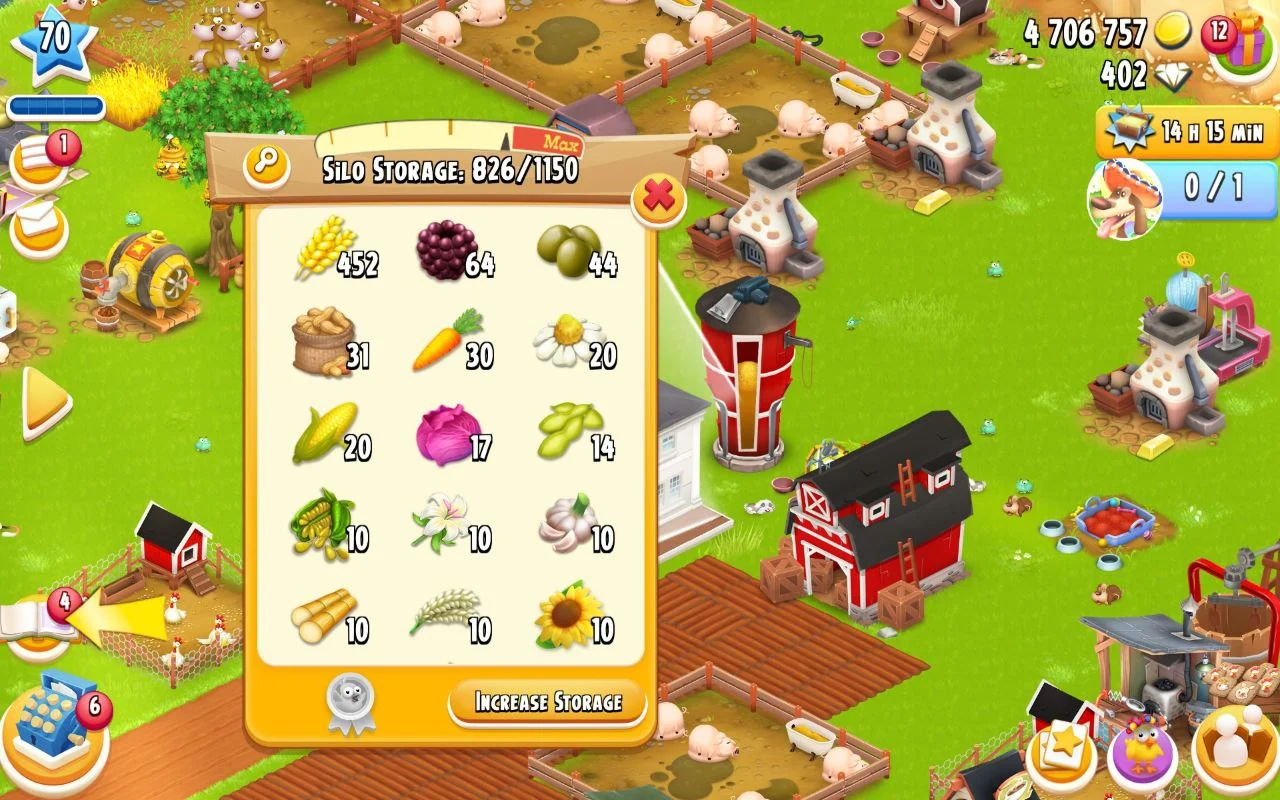 ✨️ CHEAPEST LEVEL 70 HAY DAY FARM 🌾 4706757 COINS🪙 3159/3150 BARN STORAGE💪 826/1150 SILO STORAGE🎯 402 GEMS💎 SUPPORTS BOTH iOS&Android✅️ INSTANT DELIVERY 🚚