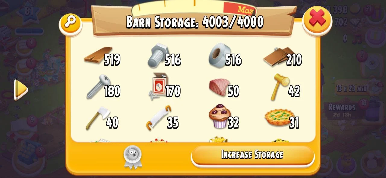 ✨️ CHEAPEST LEVEL 81 HAY DAY FARM 🌾 2559398 COINS 🪙 4003/4000 BARN STORAGE💪 846/1000 SILO STORAGE🎯 702 GEMS💎 SUPPORTS BOTH iOS&Android✅️ INSTANT DELIVERY 🚚