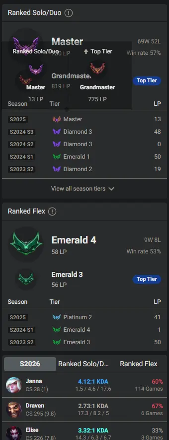 🌍 EUNE 🔥 Master (730 LP) 📌 Support Main 💎 Grandmaster Peak S16 & S15 ✨ 🔐 Lifetime Ownership 🏷️ #TH-0942