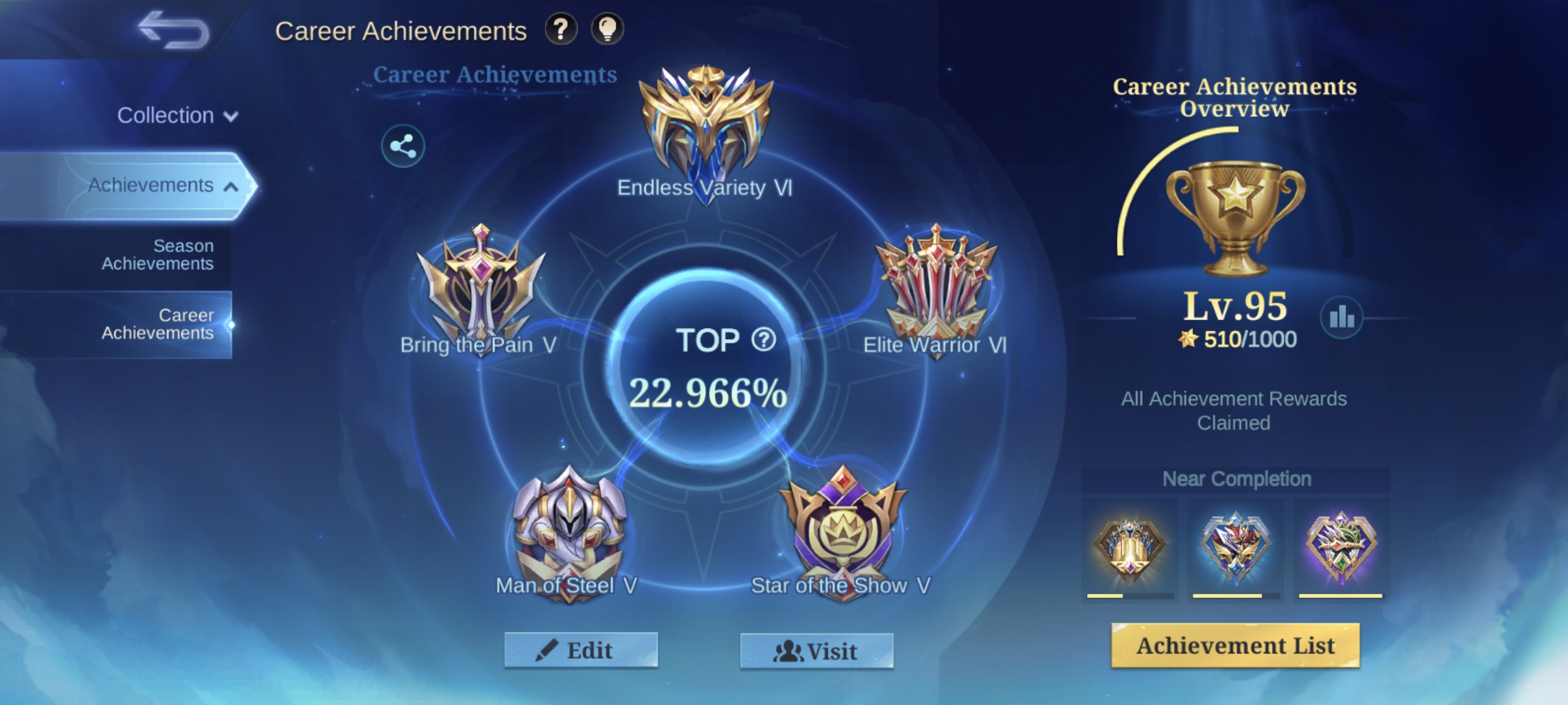 Expert Collection 2 (160 skins) | 125 heros unlock | Account level 69(very high) | High rank 101 stars mythic immortal