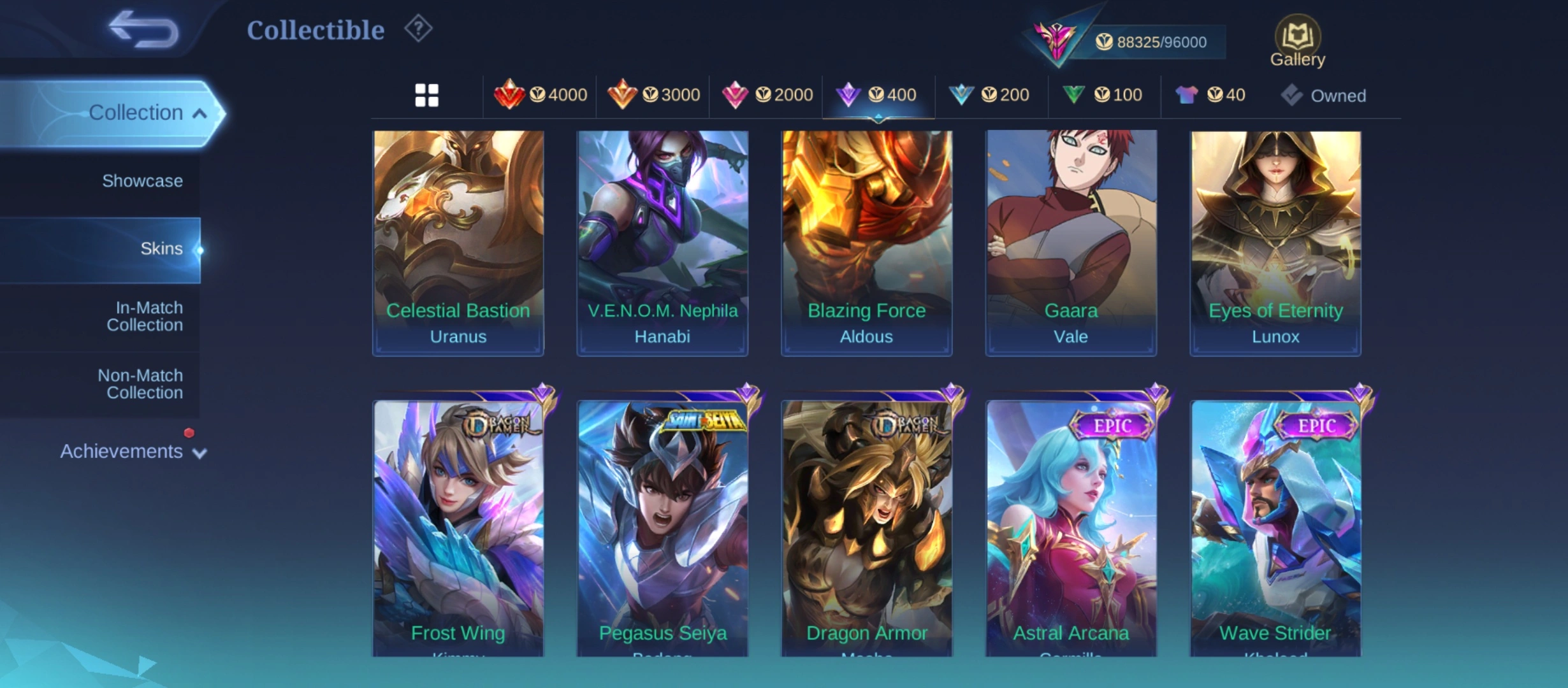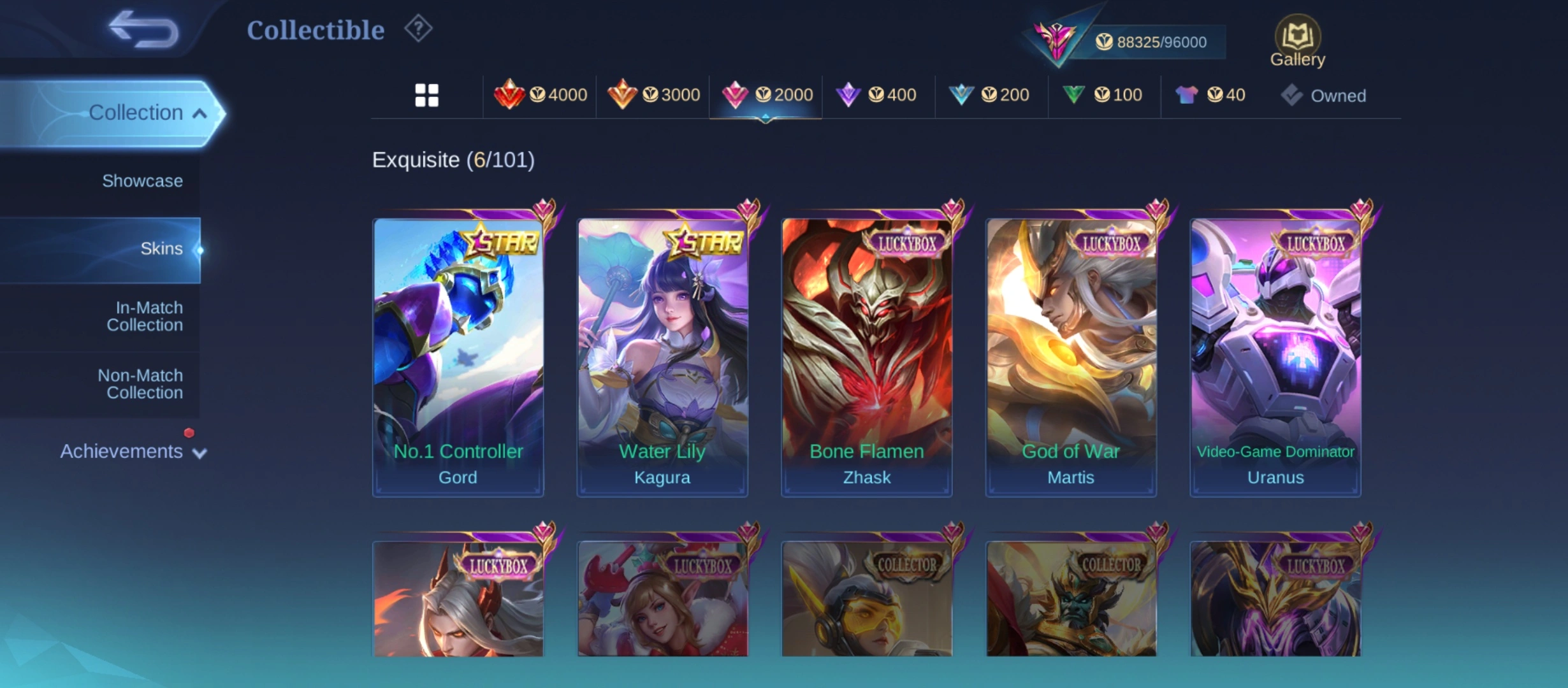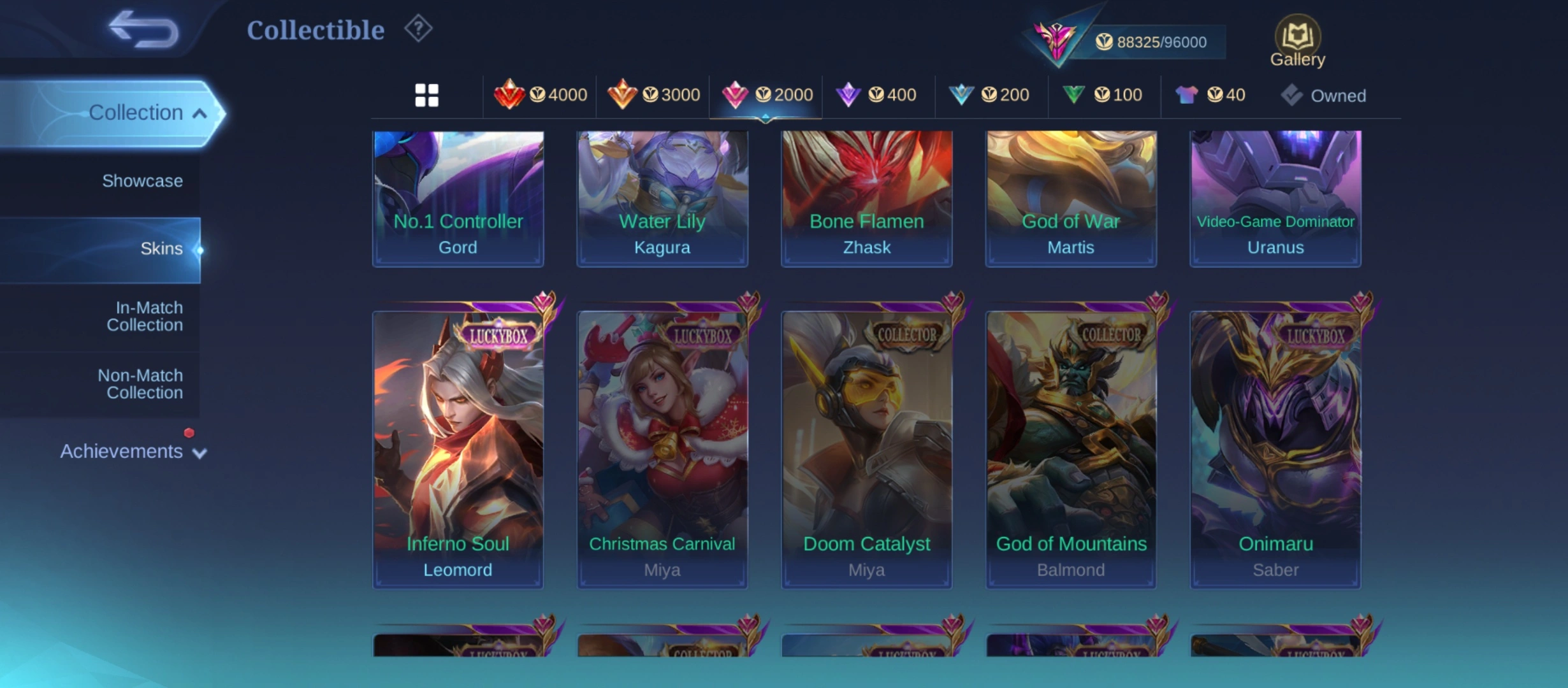 GG885|Lvl 57|EXALTED CC 4|74% HIGH WR|271 SKIN|ALL EMBLEM MAX|FRANCO LEGEND|GOJO XAVIER JJK|GUSION KOF|VALIR GOLD SAINTSEIYA|NARUTO UZUMAKI|FLORYN SANRIO