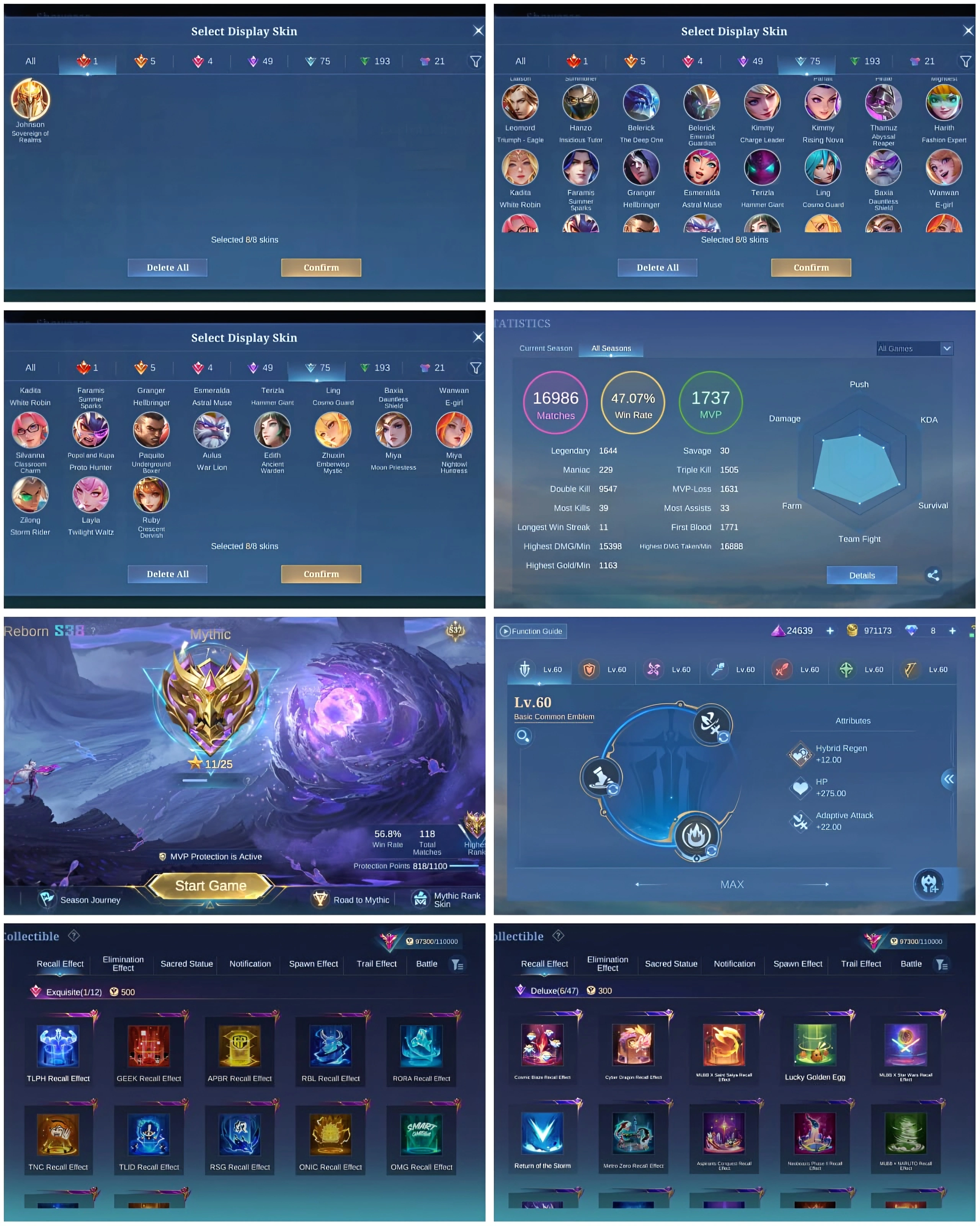[IOS/ANDROID] CEL LVL 134 | 130 HEROES | 348 SKINS | EXALTED 4 | JOHNSON LEGEND ⸱ GUSION KOF ⸱ FANNY ASPIRANT ⸱ CLAUDE PRIME ⸱ 3 LUCKYBOX