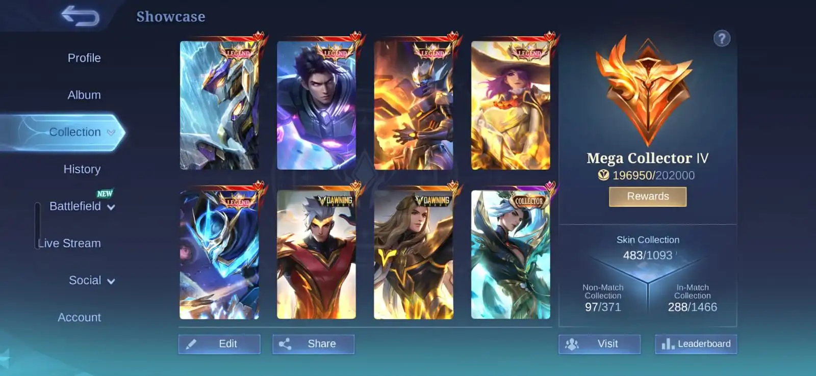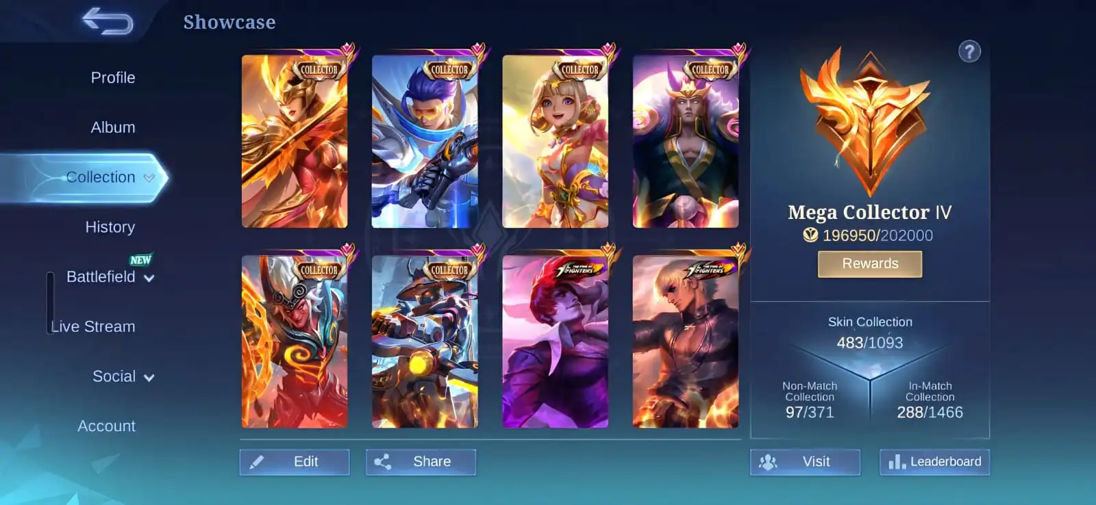 [IOS/ANDROID] CEL LVL 88 | 132 HEROES | 483 SKINS | MEGA 4 | OP SKINS | 5 LEGEND INC LESLEY GRANGER ⸱ 8 COLLECTOR INC LING ⸱ KOF CHOU GUSION ⸱ LANCE CHOU DAWNING STARS
