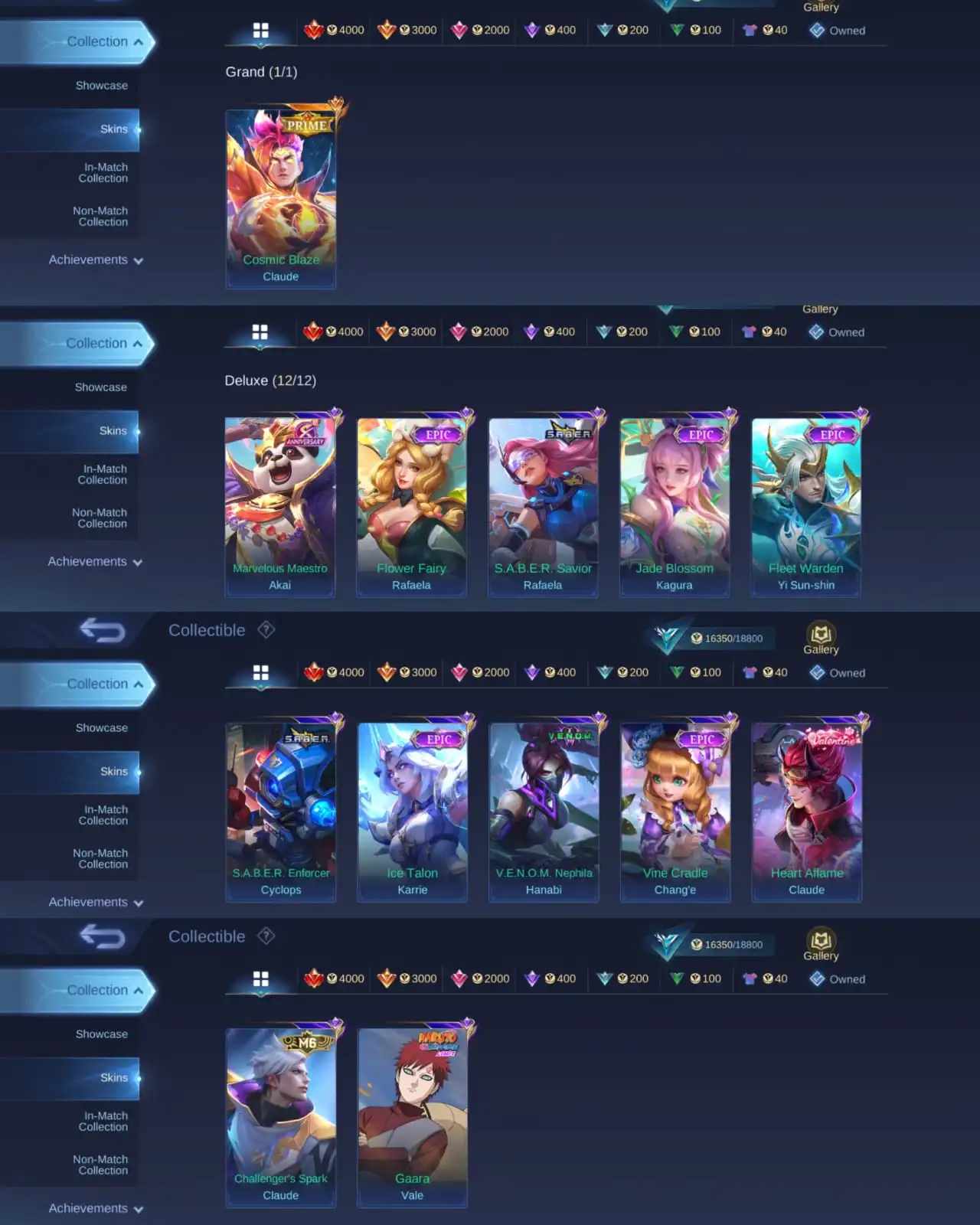 ML 325⚡PRIME CLAUDE⚡️EPIC RAFAELA KAGURA YI SUNSHIN KARRIE CHANGE⚡️VENOM HANABI⚡️VALENTINE CLAUDE⚡️NARUTO VALE⚡️M6 CLAUDE⚡️SABER CYCLOPS⚡️