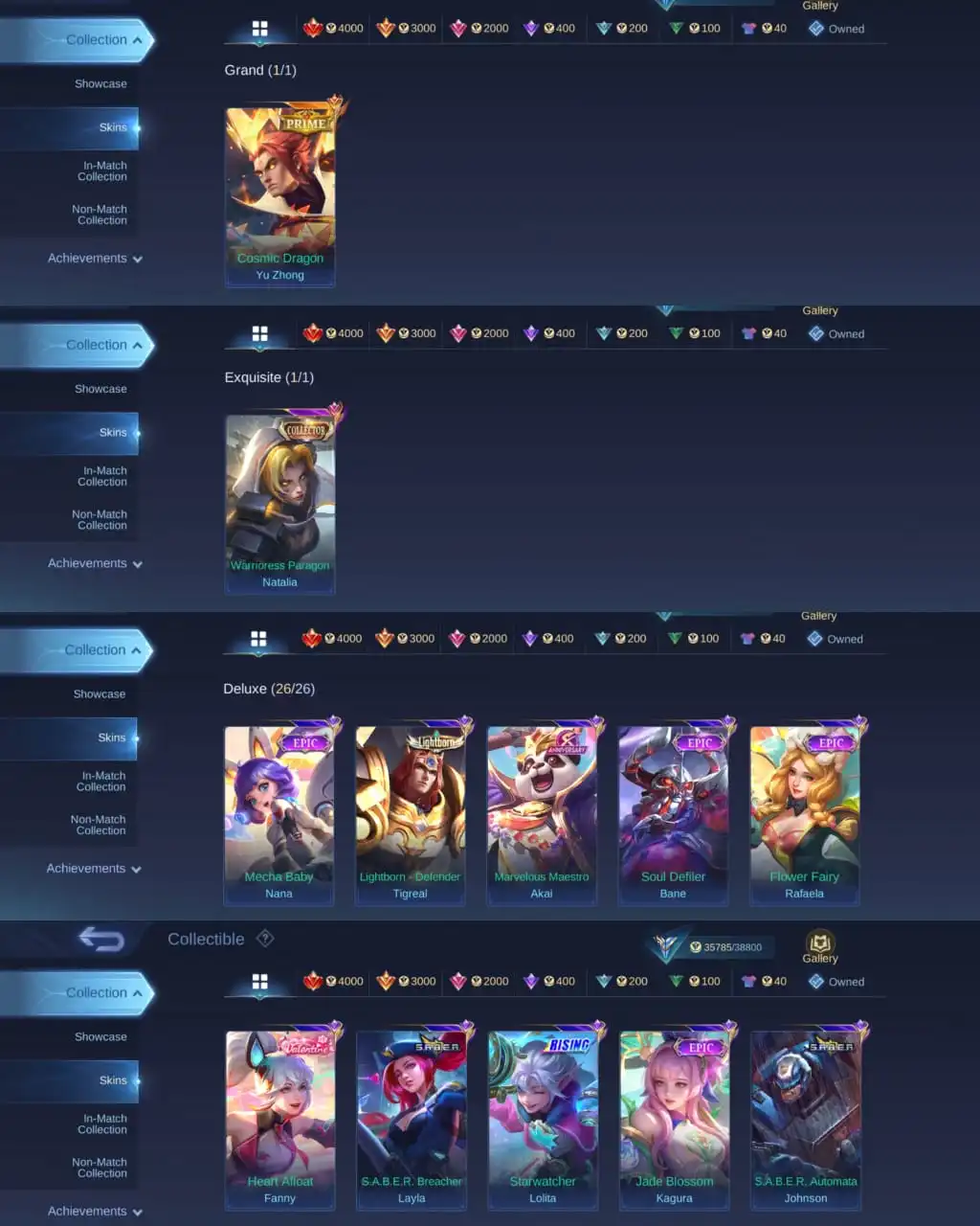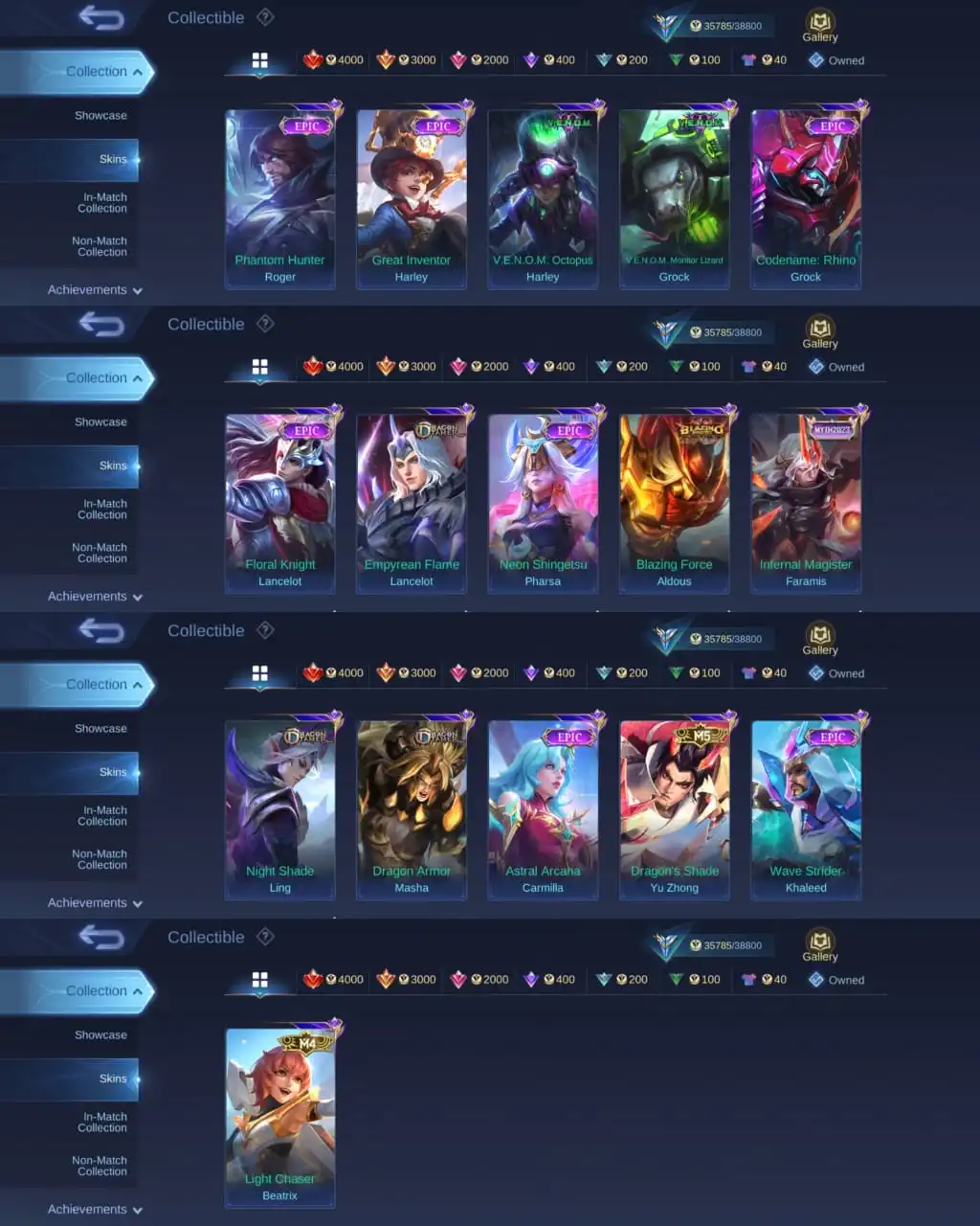 ML 339⚡FULL MAX EMBLEM⚡PRIME YUZHONG⚡️COLLECTOR NATALIA⚡️LIGHTBORN TIGREAL⚡️11 EPIC⚡️ VALENTINE FANNY⚡️RISING LOLITA⚡️VENOM HARLEY GROCK⚡️BLAZING ALDOUS⚡️DRAGON LANCELOT LING MASHA⚡️M4 BEATRIX⚡️
